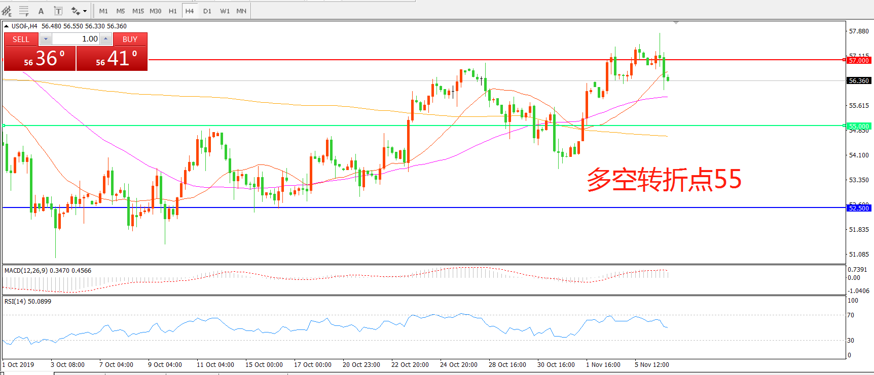 交易策略:在55.00之上看涨,目标57.00 58.50