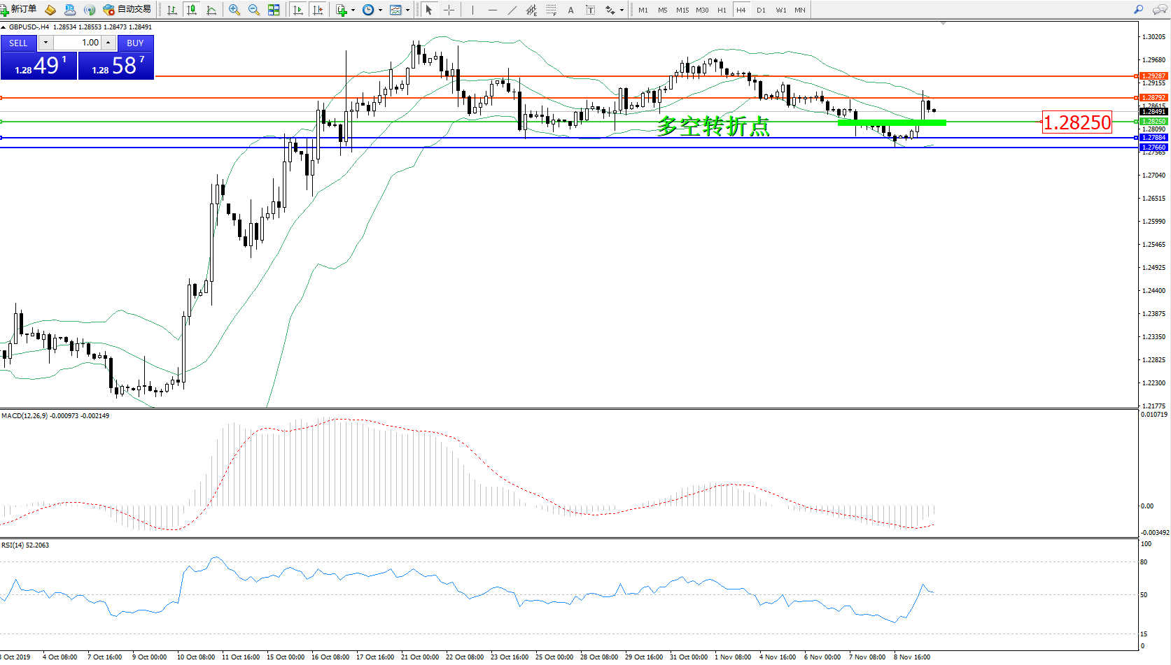 交易策略:1.28250上方看涨,目标1.28792、1.29287