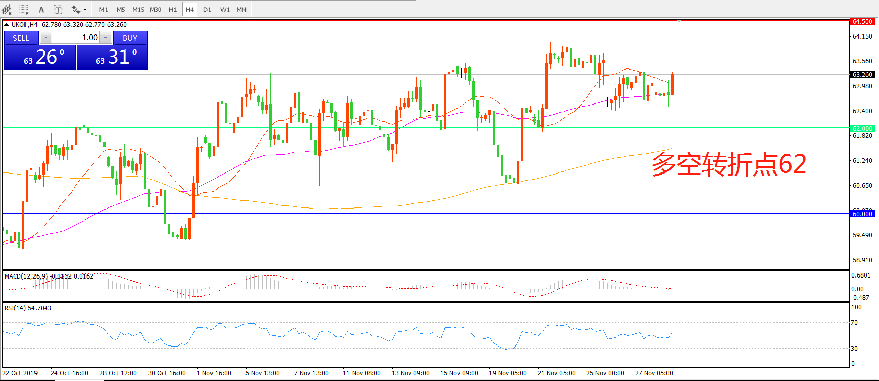 交易策略:在62.00之上看涨,目标64.50     66.00