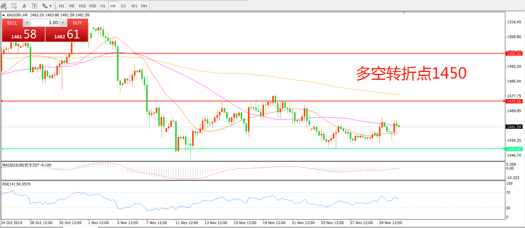 交易策略:在1450.00之下看涨,目标1475.00 1500.00