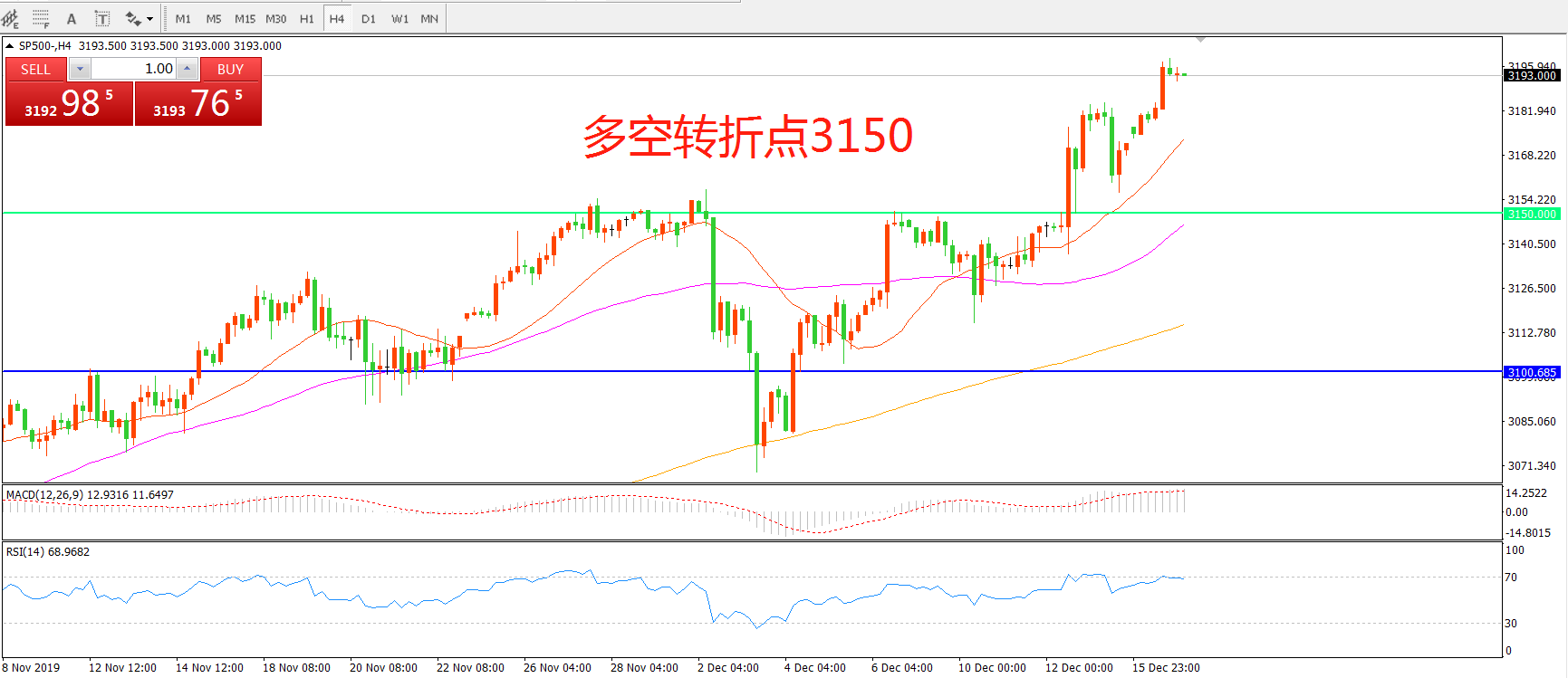 周一(12月16日),国际贸易利好进展及美联储大规模提高流动性的计划提振投资者做多情绪,标普500创收盘新高,报3192.92点,11个板块中有10个板块上涨,1个板块下跌,且连续第4个交易日上涨。大型科技股多数收涨,Facebook涨1.96%,奈飞涨1.91%,苹果涨1.71%,再创股价新高,中概股普涨, 阿里巴巴涨1.49%,京东涨1.88%。