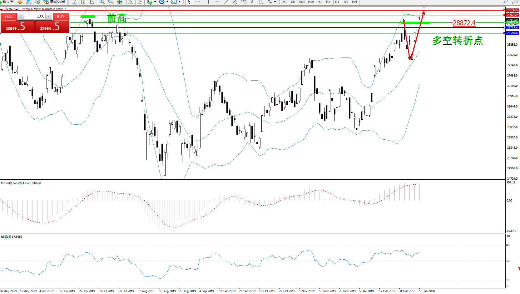 香港恒生指数1月13日(周一)收盘上涨316.74点,涨幅1.11%,报28954.94点;港股早上高开134点后,沽盘涌现,恒指低见28671。随后有买盘追入而再倒升,高见28940,最多升301点。短期内港股上行的依然意愿较强,本周市场将憧憬中美签订首阶段贸易协议,或继续提振市场情绪。恒指短期上升动力减弱,虽然可能存在调整压力,但春季行情并不会因此结束。
