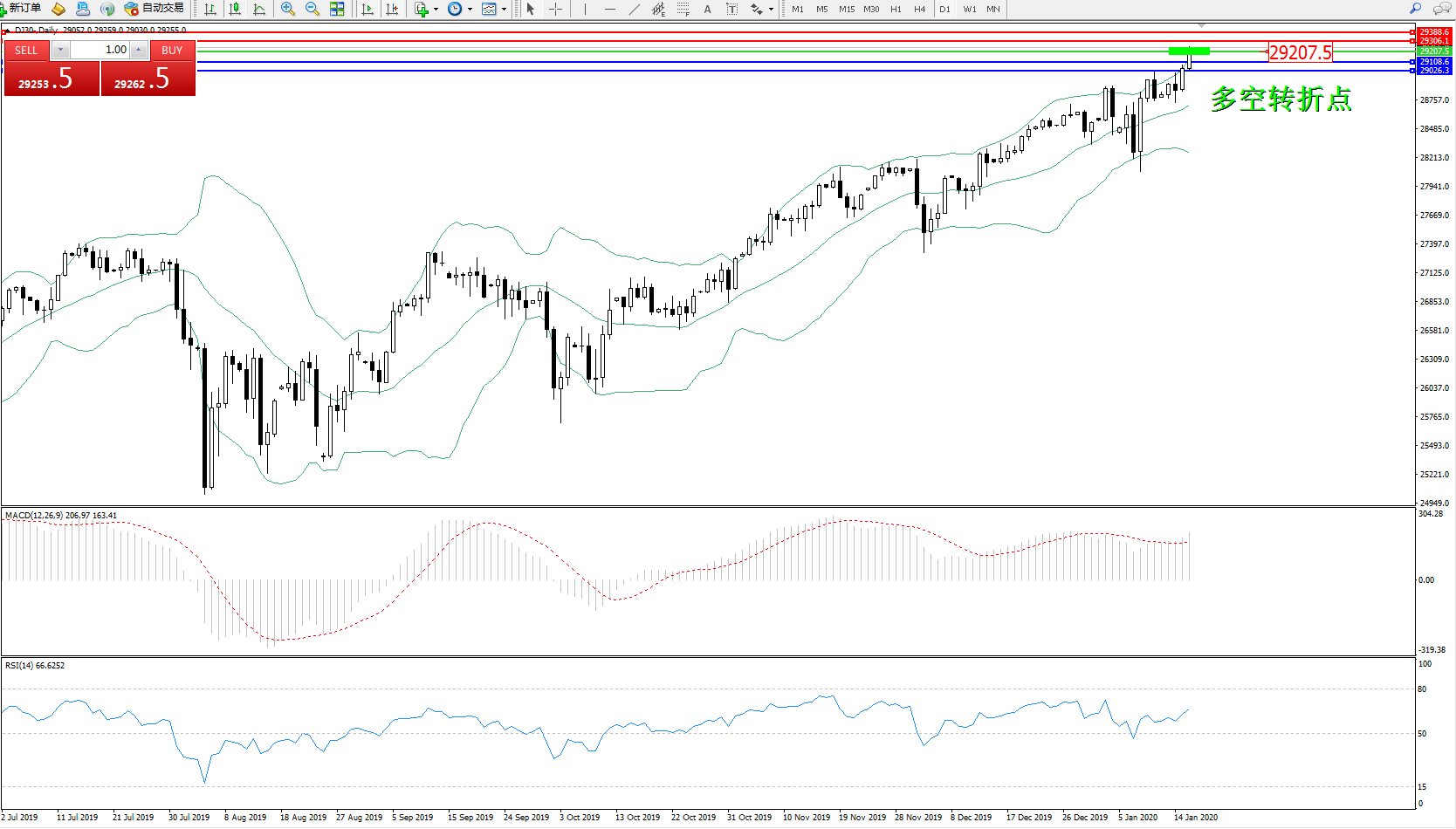道琼斯指数1月16日(周四)收盘上涨267.30点,涨幅0.92%,报29297.57点。美国三大主要股指在本周稍早多次创下纪录之后,周四大涨至历史新高,科技股和金融股领涨;美中经贸协议周三签署以及美国消费者需求依然强劲的迹象,令屡创新高的美国股市涨势加速。消费者确实处于积极状态,当考虑美中紧张关系缓解的因素后,市场处于一个相当不错的位置。对许多投资者而言,全球最大两个经济体的第一阶段协议正式签署,意味着贸易摩擦缓解。如果这种局面持续的话,交易员将寻找新的催化剂,最有可能在经济数据和财报季中。