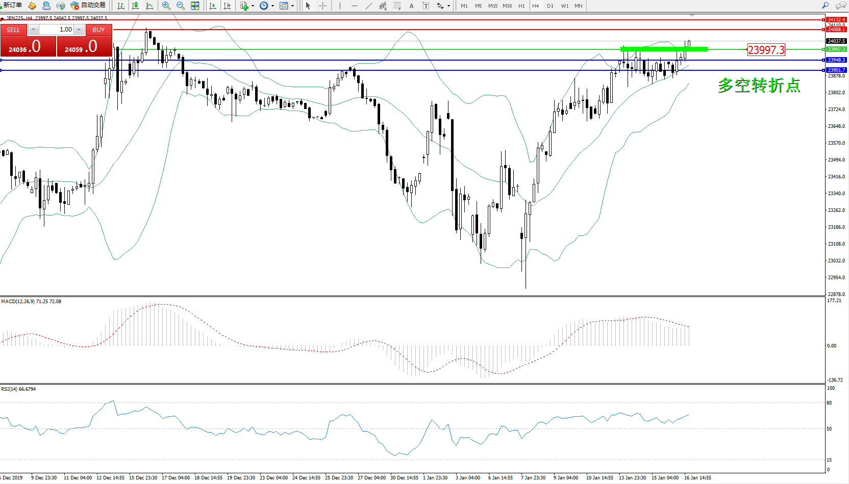 技术点评:多头动力持续拉升后高位遇阻开始整理,短期得到相应压制,但上行趋势并未改变,多头持续发力上扬,正突破布林带指标上轨位置持续上攻中,布林带指标呈收口走势后即将再次开口,MACD指标处于多头区域高位整理平移中,RSI指标处于多头区域高位缓慢上移中;