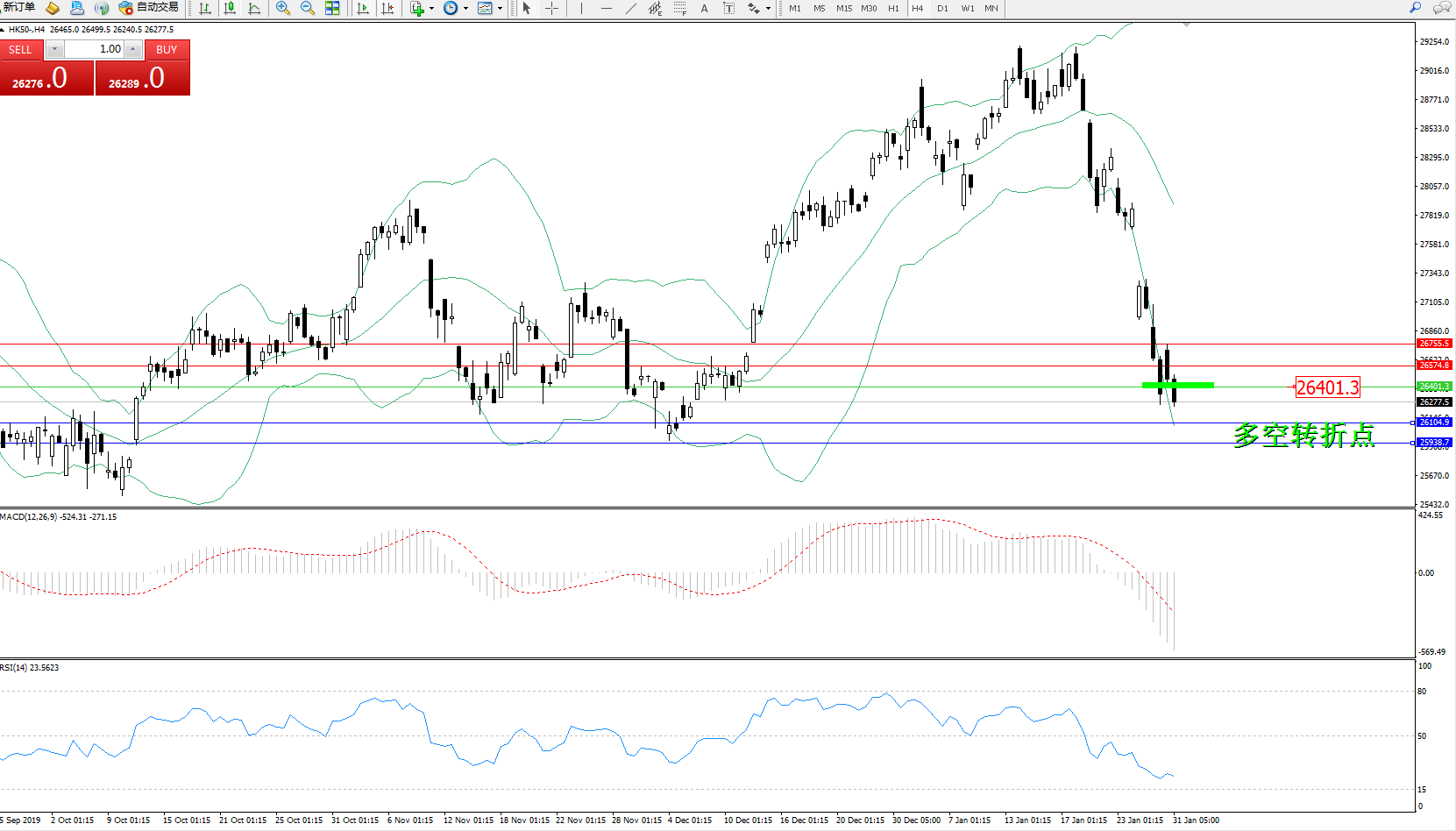 香港恒生指数1月31日(周五)收盘下跌136.50点,跌幅0.52%,报26312.63点;港股高开低收,恒指收盘跌0.52%,本周累跌约5.7%;石油、黄金板块普跌。受基数效应及中美签署首阶段贸易协议相关利好消息带动,去年12月香港出口增长由负转正,但整体前景仍不明朗,若贸易战下无新关税实施,香港出口跌势将较去年小,预测全年出口跌2%。新型冠状病毒肺炎疫情对旅游、零售、内部投资消费的冲击较贸易大,香港进出口货易在2003年SARS时仍录得正增长。他又认为,疫情对中美达成第二阶段贸易协议影响或不大,相信第二阶段协议并非两国优先处理的问题,因为今年是美国大选年,总统特朗普会尽量维持当地经济扩张,而特朗普现时在中美贸易议题上换取的得益不大,反而将矛头指向欧盟。
