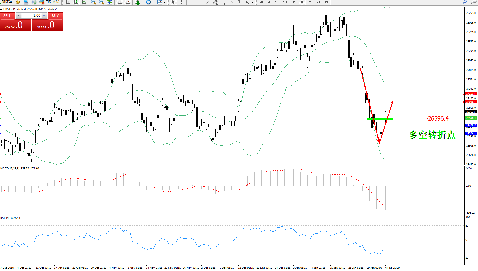 香港恒生指数2月4日(周二)收盘上涨319.00点,涨幅1.21%,报26675.98点;餐饮股、影视娱乐股集体反弹,药品股依旧强势,A股昨日大跌,今日亦绝地反弹,市场对于肺炎疫情的影响似有趋弱。主板全日成交1358.55亿港元,港股通净流入42.2亿港元,港股跌势最急的阶段可能已经过去,疫情带来的潜在沽压已得到初步释放。但是否见底仍难判定,预计短期内市场还将反复震荡。短期都有调整压力,但相信幅度不大。毕竟A股去年的表现领跑全球主要股市,现在稍稍回吐也是正常的。