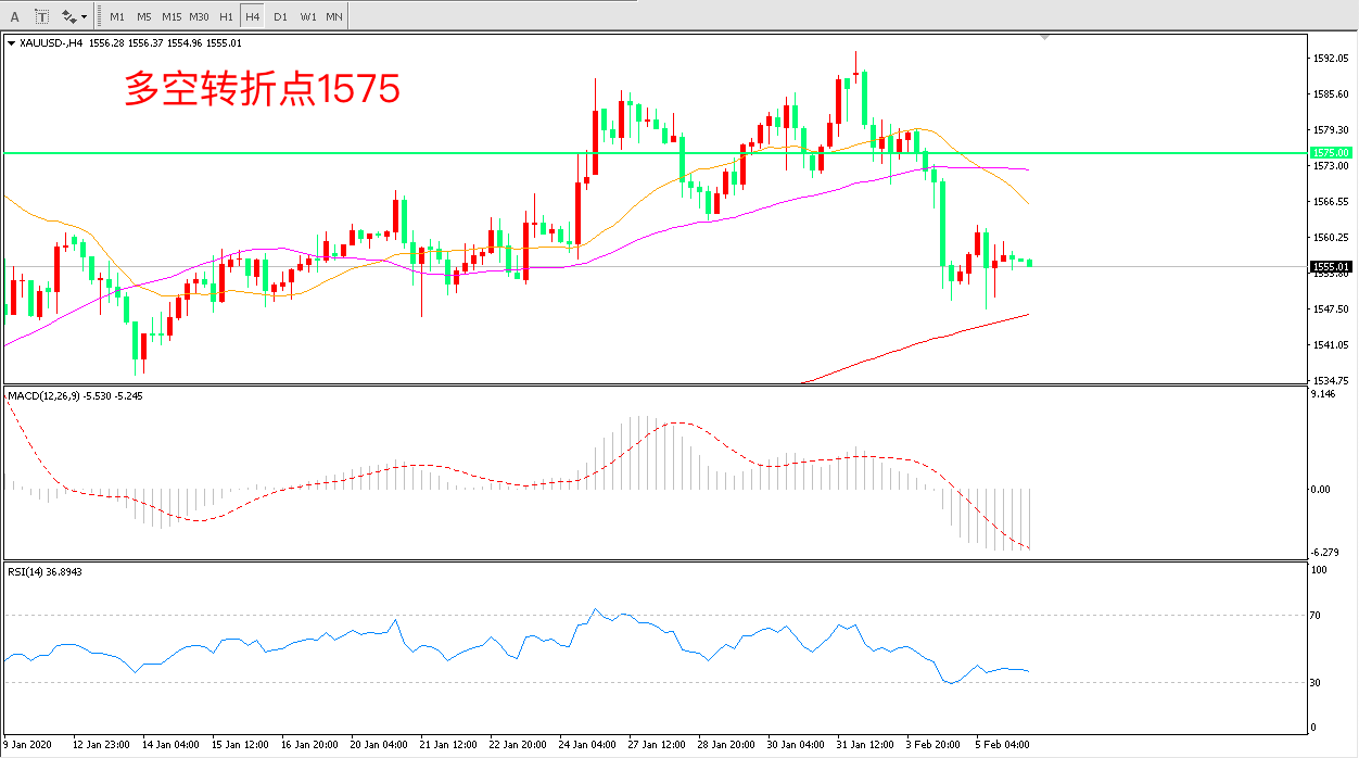 交易策略:在1575.00之下看跌,目标1535.00 1500.00