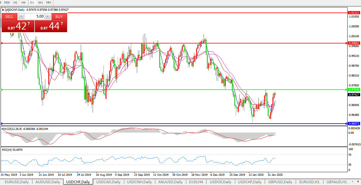 交易策略:0.9765下方看跌,目标0.9600、0.9550