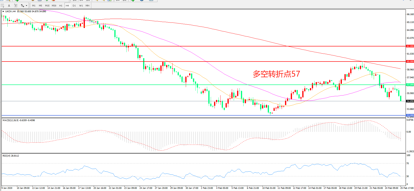 周二(2月26日),意大利、韩国等国疫情持续肆虐,这令原油需求面的威胁日益增加,布伦特原油震荡下行,收报54.89美元/桶。周三凌晨,美国石油协会公布数据显示,当周API原油库存增加130万桶,低于预期,晚间23:30分将公布EIA原油库存数据,务必重点关注。