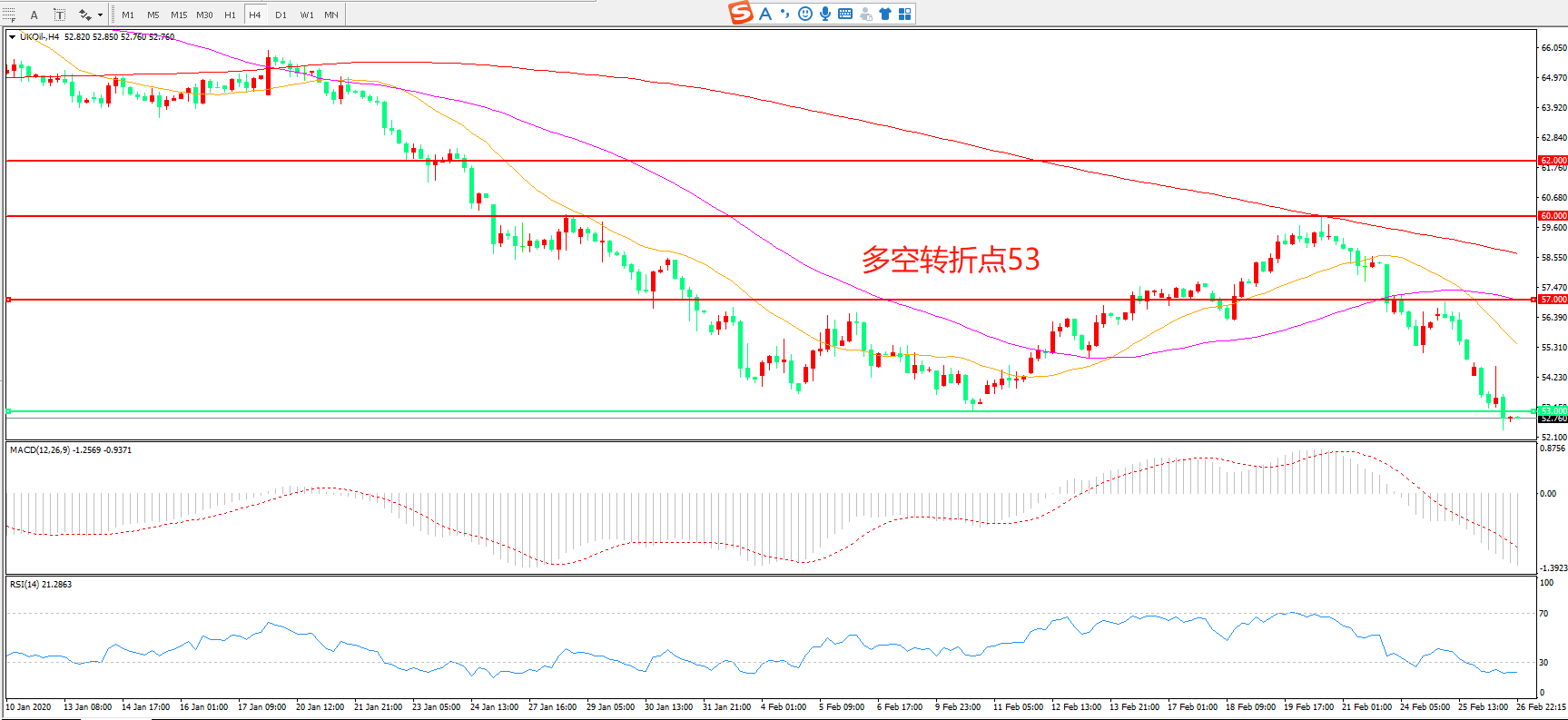 周三(2月26日),美国能源信息署公布数据显示当周EIA原油库存增加45.20万桶,低于预期,汽油、精炼油库存同步减少,利多油价。但良好的数据表现却并未能拯救“深渊”中的油价,中国之外的海外国家确诊,引发了对卫生安全的担忧,新冠疫情迫使人们减少出行,这对油价构成巨大压力,布伦特原油延续下行,收报52.82美元/桶。