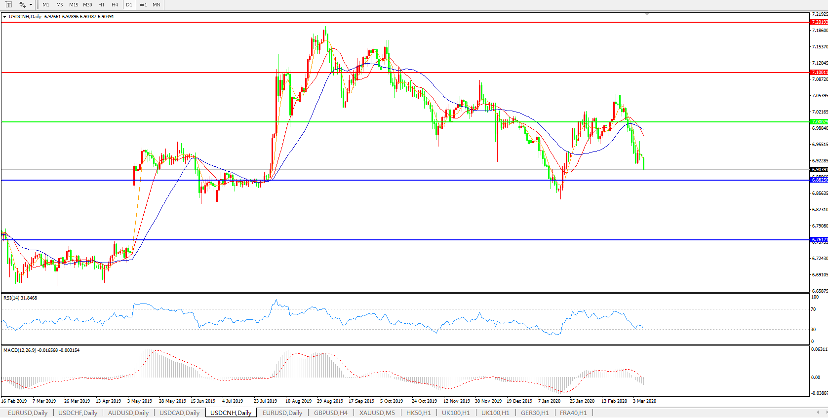 美元兑人民币USDCNH 日线图: