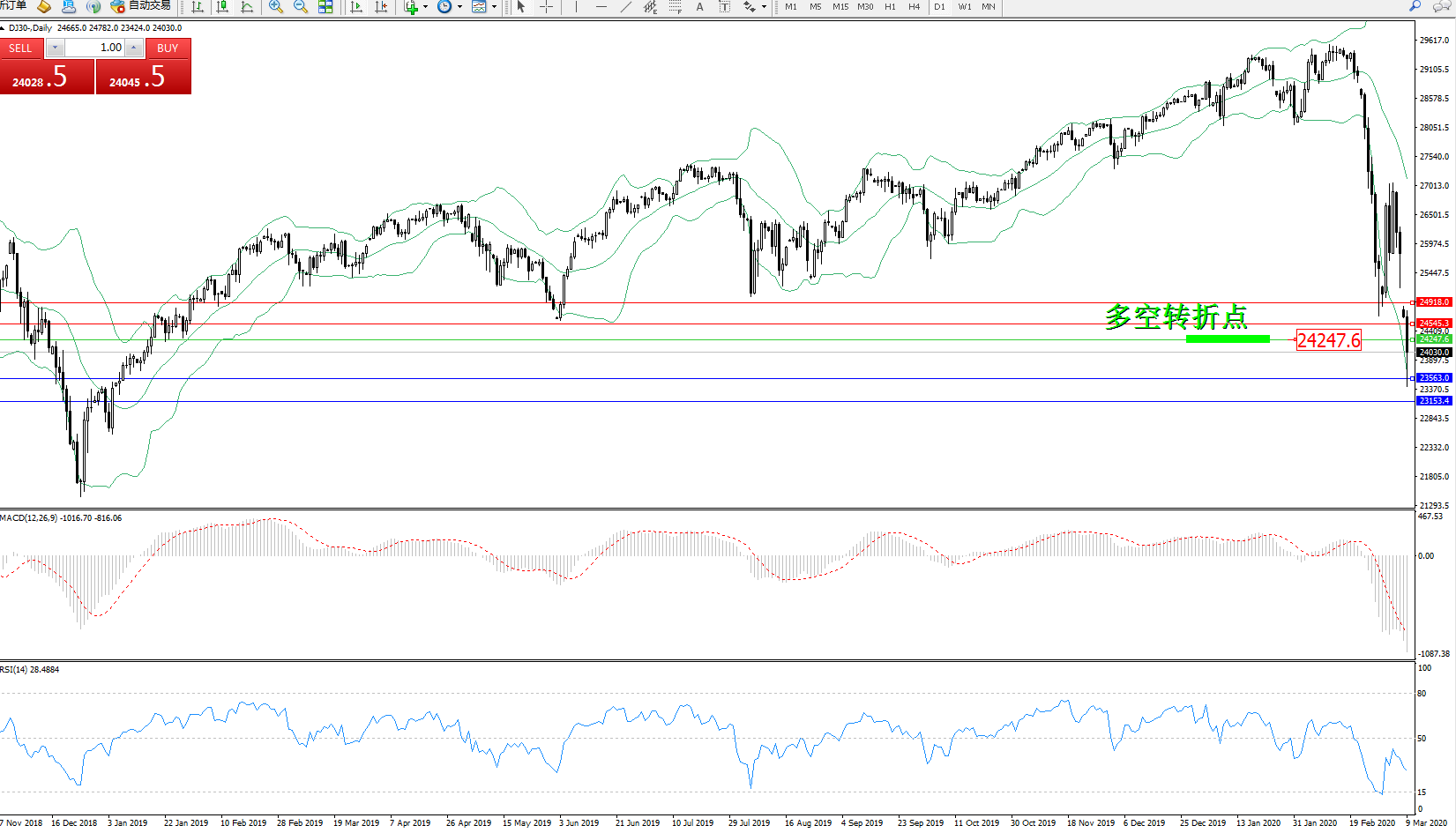 道琼斯指数3月9日(周一)收盘下跌2014.00点,跌幅7.79%,报23850.79点。欧美股市暴跌,美股触发熔断,道指收跌逾2000点;全面石油价格战让已经面临公共卫生事件的金融市场雪上加霜。 市场开盘即重挫,4分钟内跌幅达到7%,触发了纽约证券交易所熔断机制,交易暂停了15分钟。全球两大石油生产国之间爆发全面价格战,令卫生事件引发的担忧更加严重,并且突然之间改变了美元的动能。不到三周前,一个美元走势指标还处在两年多以来的最高水平,但是在急剧下滑之后,那些押注美元走弱的人现在看到了进一步下跌的机会。