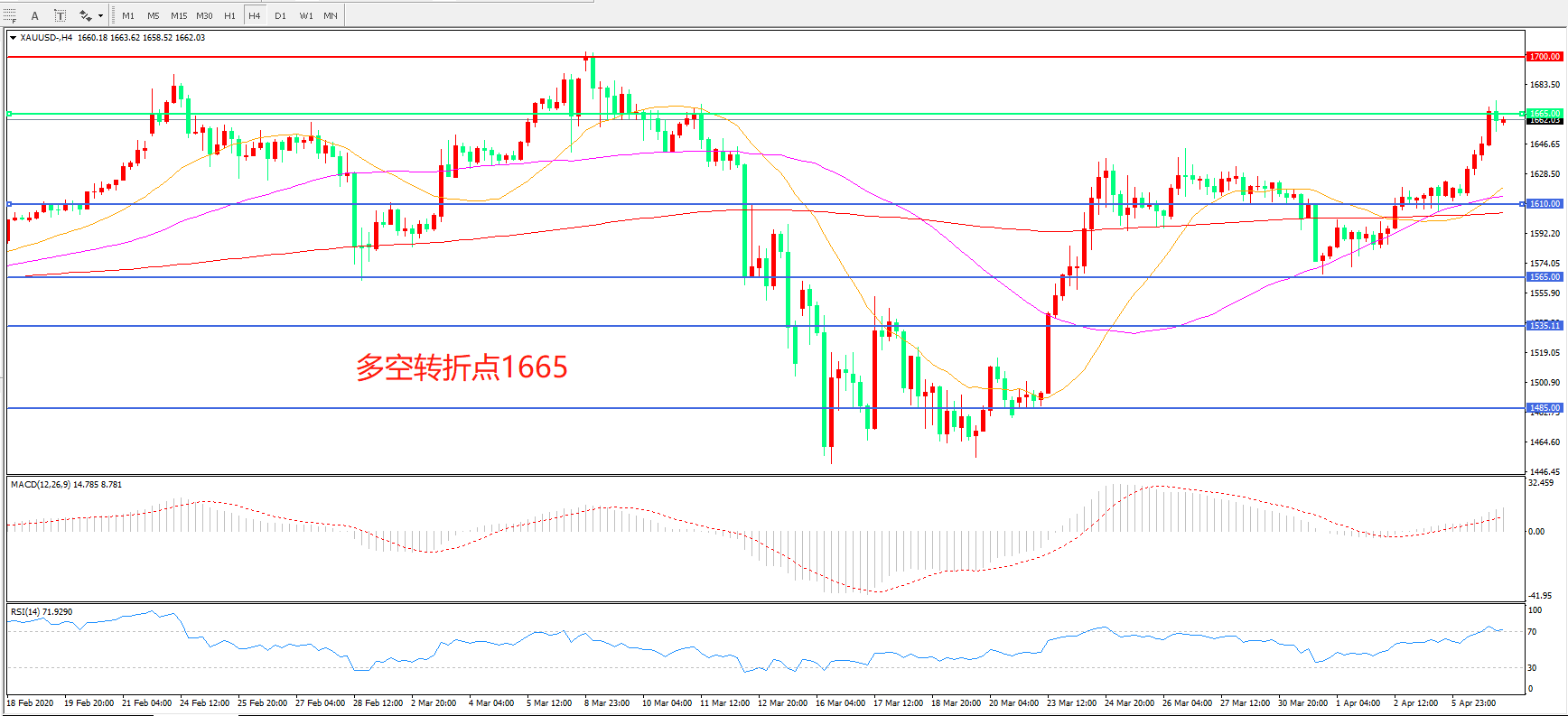 多空转折点:1665.00