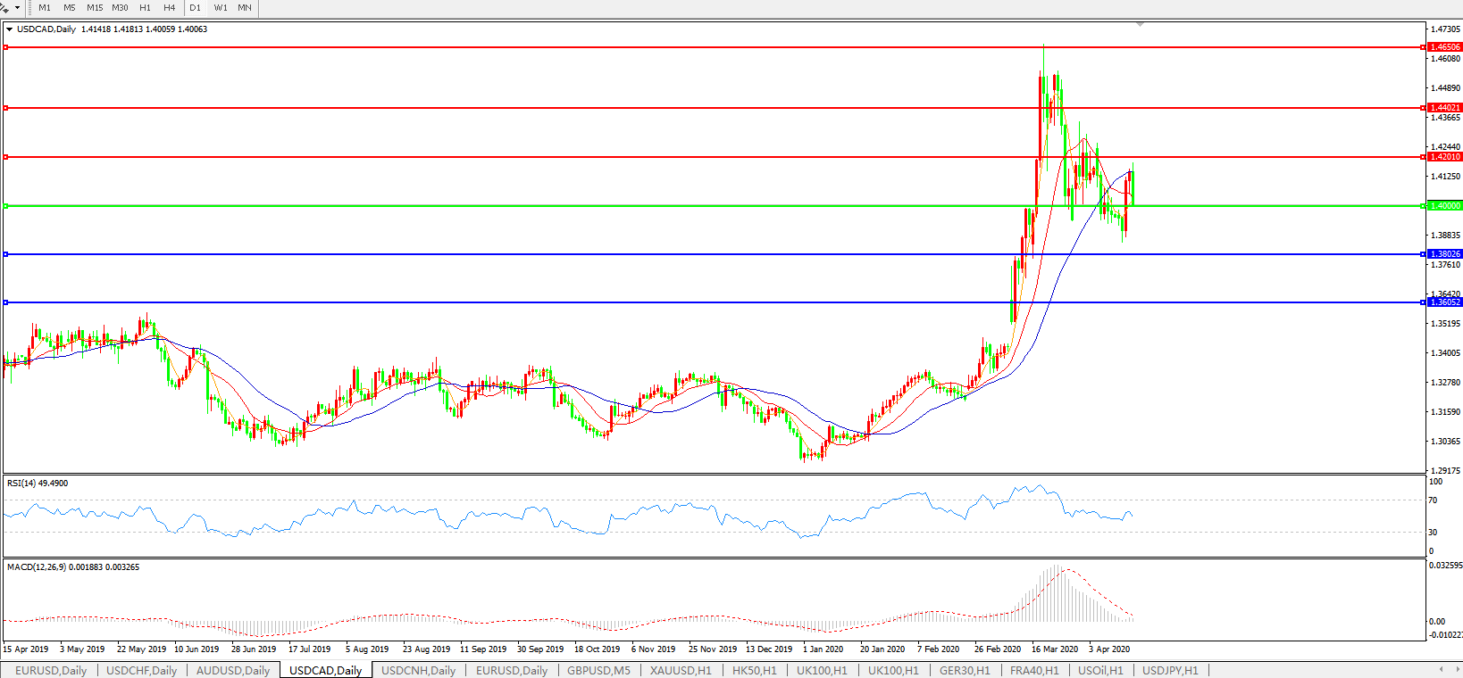 美元兑加元USDCAD    日线图: