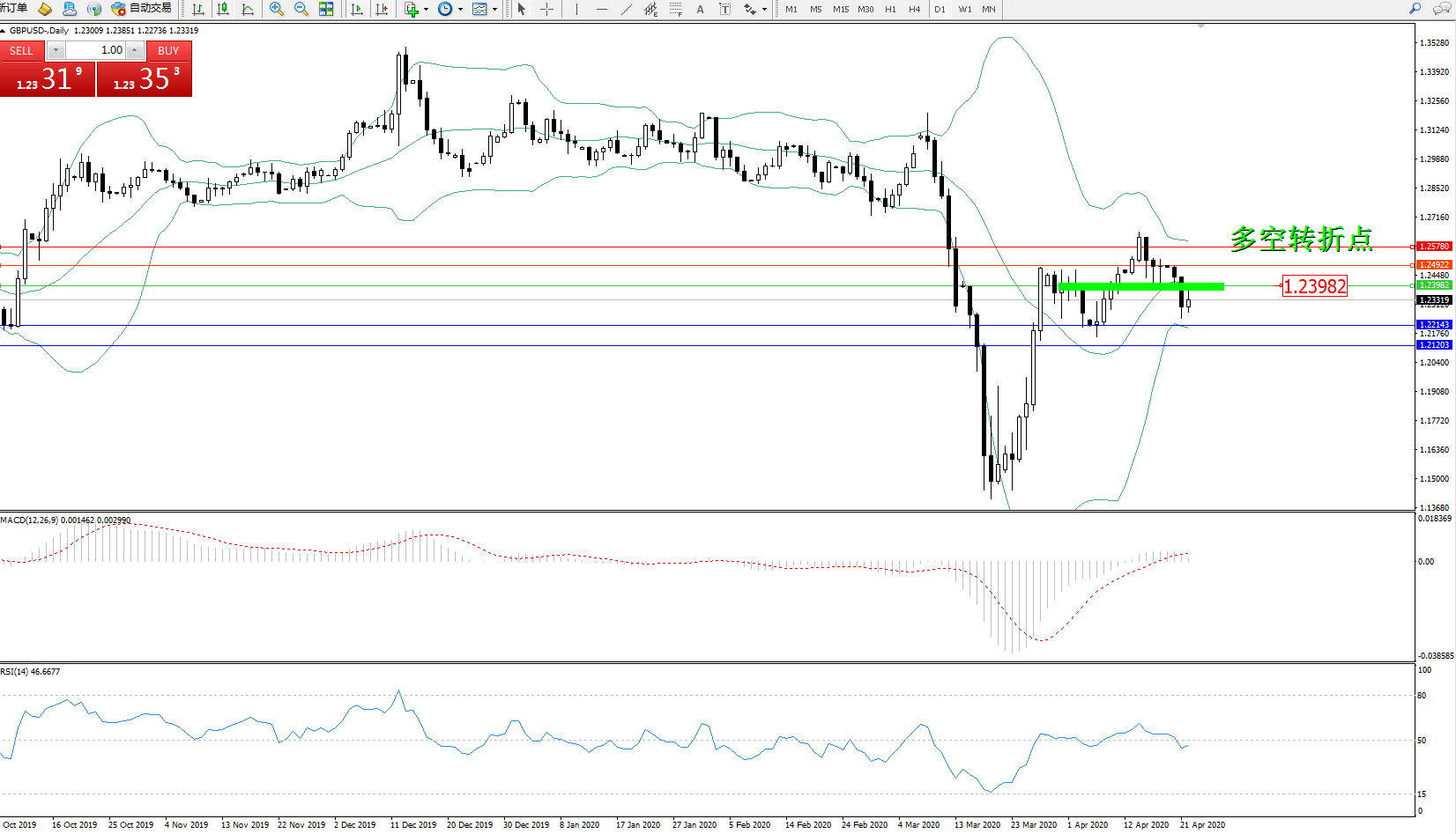 交易策略:1.23982下方看跌,目标1.22143、1.21203