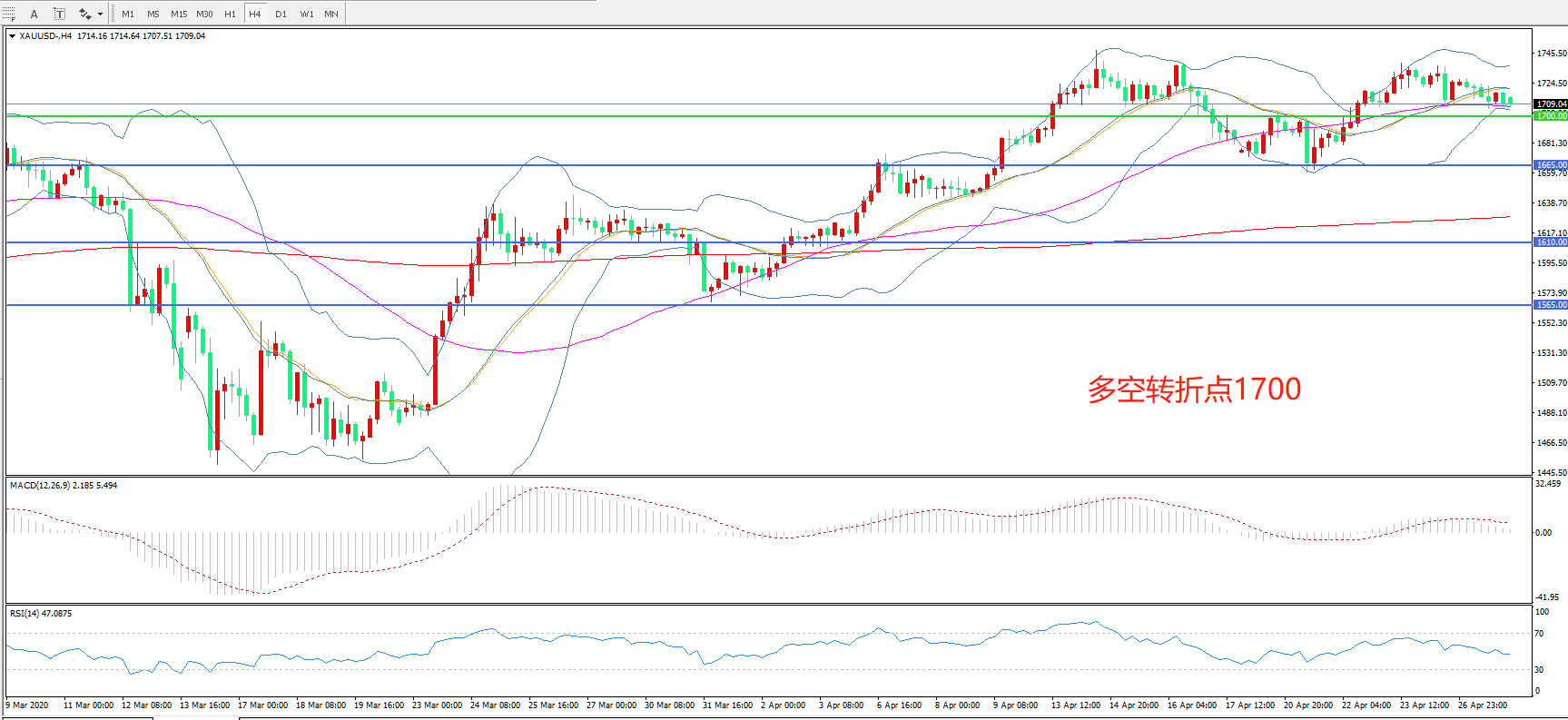 多空转折点:1700.00
