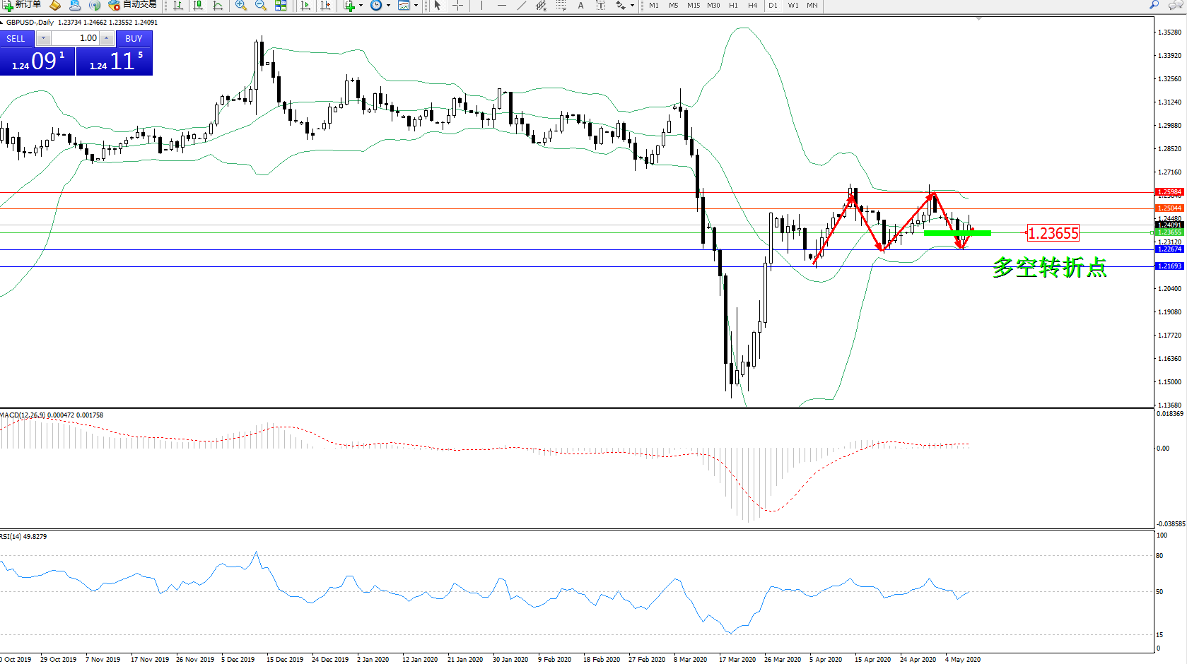 交易策略:1.23655上方看涨,目标1.25044、1.25984
