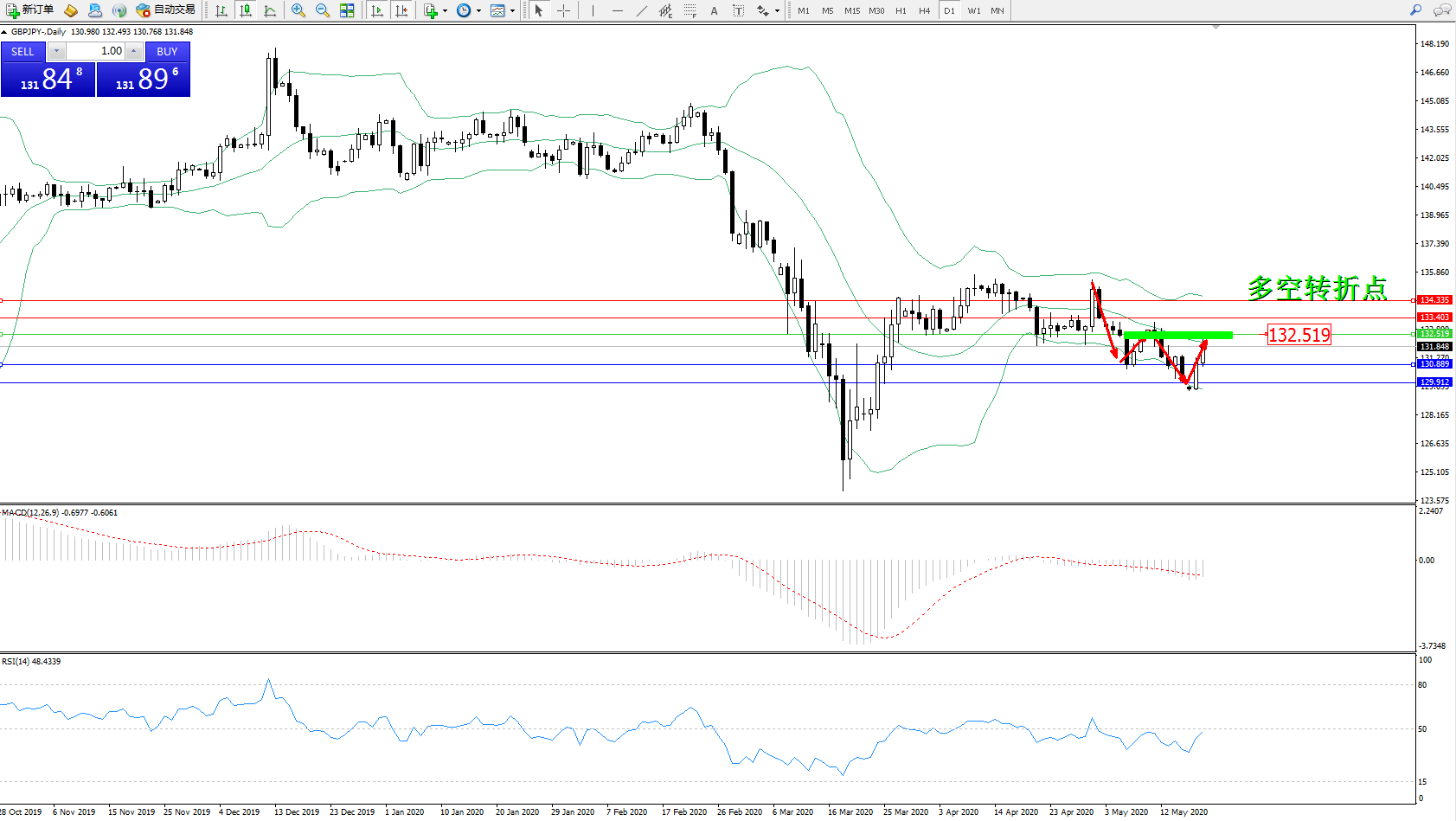 交易策略:132.519下方看跌,目标130.889、129.912