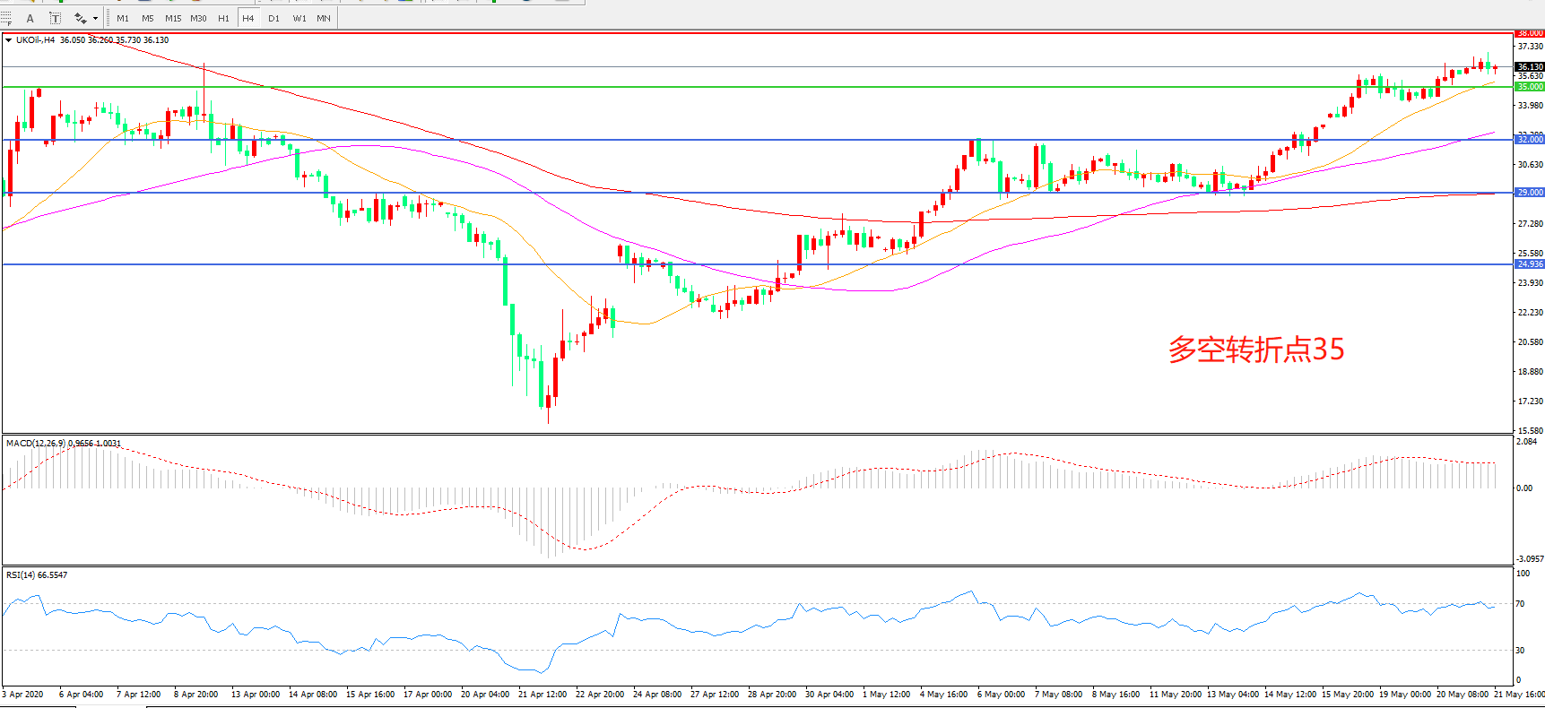 周四(5月21日),受美国原油库存下降、 OPEC牵头的减产的提振,油价延续震荡上行,布伦特原油突破35美元一线后陷入整理,收报36.13美元/桶,有消息人士称,OPEC并未排除采取进一步措施支撑市场的可能性。