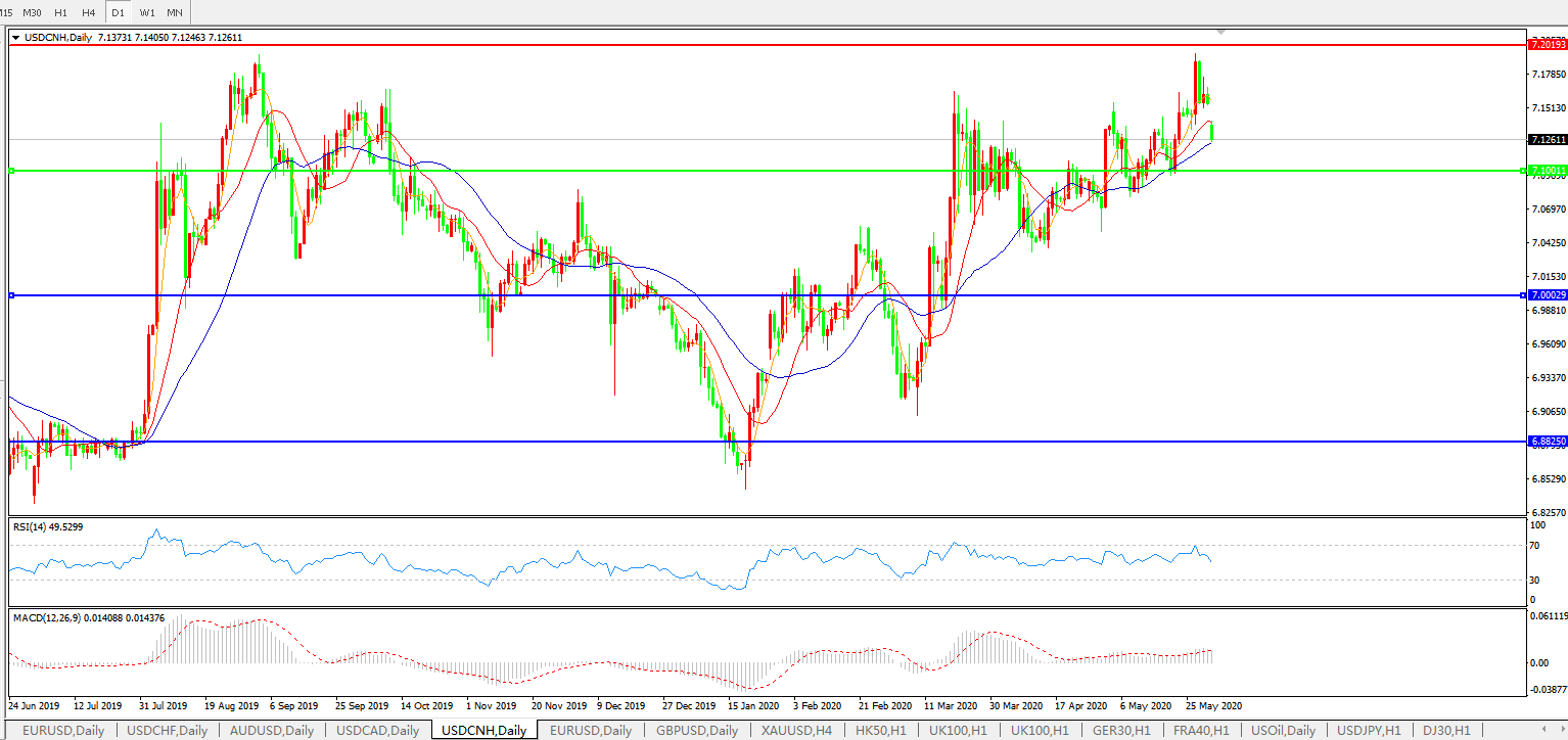 交易策略: 在7.1000之上,看涨,目标价位为7.2000,然后为7.3000。