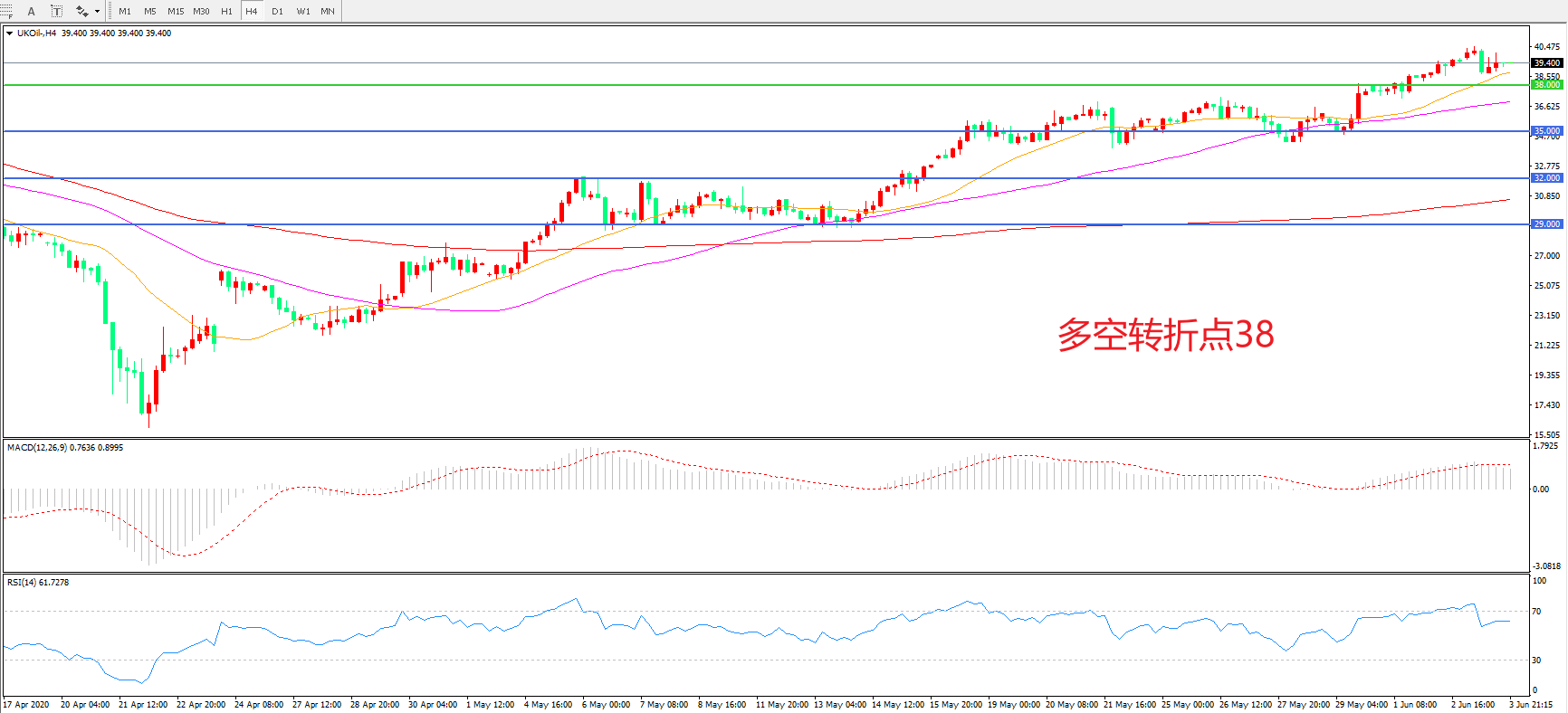 周三(6月3日),美国能源信息署公布数据显示。EIA原油库存意外减少207.70万桶,好于市场预期,但OPEC会议的召开突然传来变数,布伦特原油震荡下行,收报39.40美元/桶。目前油价的反弹主要还是受益于产油国的大规模减产,短期涨势暂缓后,需要需求方面出现更多的利好才能进一步走高。