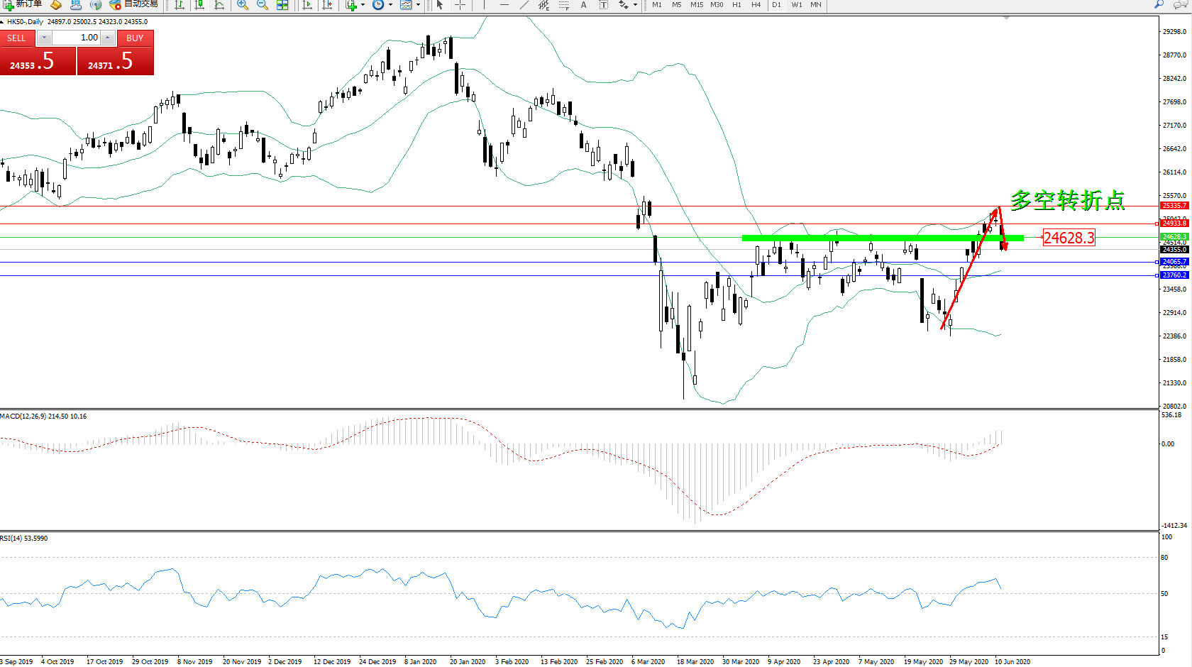 香港恒生指数6月11日(周四)收盘下跌569.58点,跌幅2.27%,报24480.15点;股三大指数呈弱势下跌行情,恒指尾盘跌幅扩大至超2%,南下资金逆势净流入14.3亿港元,大市成交额为1424.31亿港元。体育用品股、香港本地股大跌居前,滔博暴跌近12%,汇丰、渣打均跌超4%;航空股、保险股、石油股、电信股等板块普跌。恒指成份股无一飘红,半数以上跌超2%。网易首日上市涨5.69%,市值达4458亿港元位居港股市场第17位。在结束为期两天的货币政策会议后,美联储宣布将基准利率维持在0%-0.25%区间不变,并暗示2022年底之前不会加息。欧美股市暴跌,道指跌近7%,美元指数创下4月15日以来最大涨幅,因美联储黯淡经济前景和股市抛售,美国股市创下12周以来最大跌幅,受经济前景担忧影响,股市的上涨势头戛然而止.