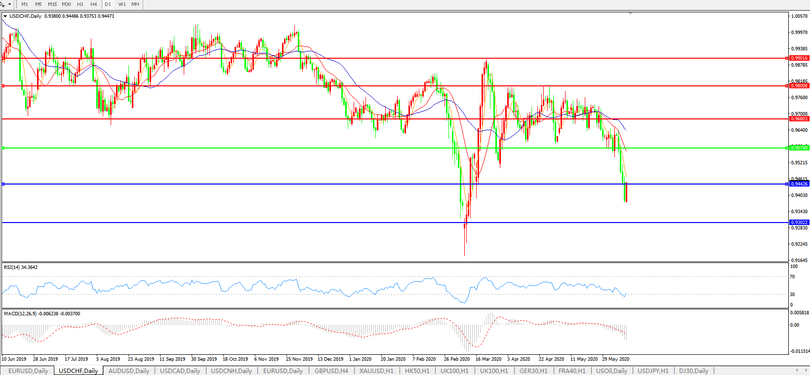 交易策略:0.9575下方看跌,目标0.9440、0.9300