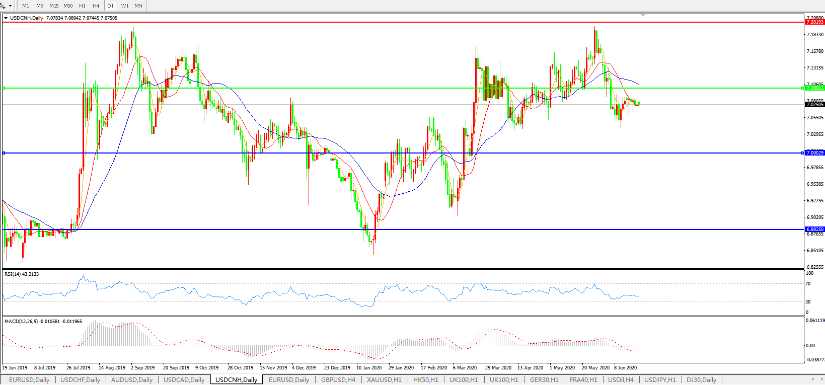 美元兑人民币USDCNH    日线图: