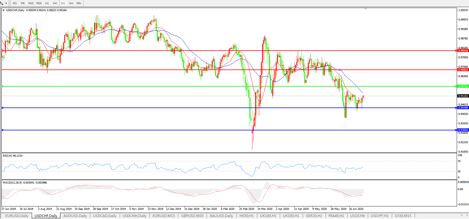 交易策略:0.9575下方看跌,目标0.9440、0.9300