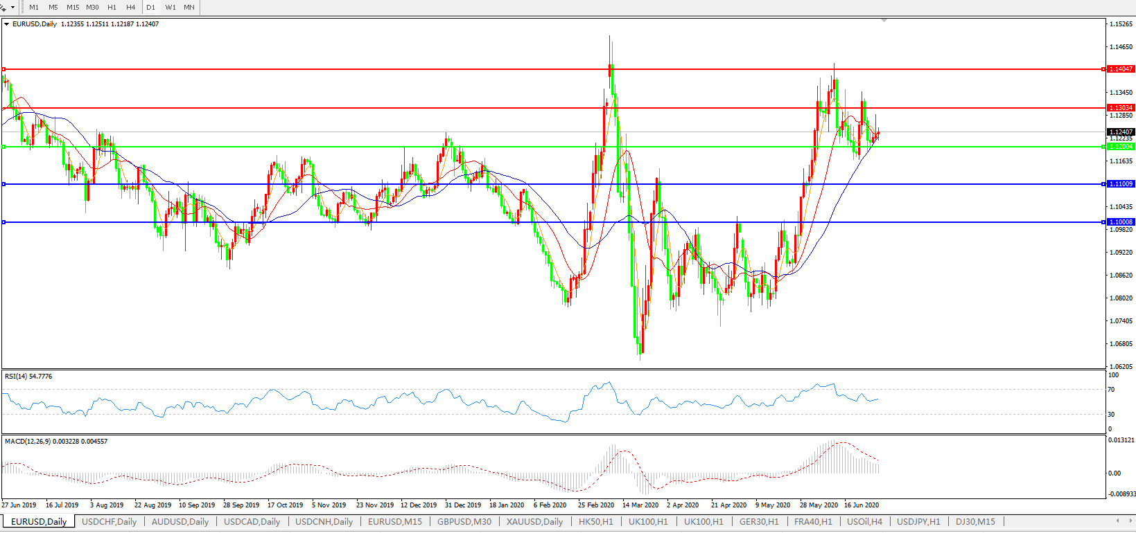 美元指数周二维持窄幅振荡格局,现报97.46,几乎持平于开盘。美联储表示一级市场公司贷款安排开始启动。市场广泛预计美联储将在2022年前保持围绕当前利率水平的宽松立场,同时可能实施“收益率曲线控制”的大门仍然敞开。受美国经济数据、美联储对企业信贷的行动以及佛罗里达和加利福尼亚的最新病例数字影响,风险偏好有所改善。美国国债国债涨跌互现。5月份二手房签约量激增44.3%,好于预期的19.3%;达拉斯联储制造业指数从5月的-49.2升至6月份的-6.1,高于预期的-21.4。欧元兑美元周二微跌0.04%,至1.1238,。欧洲央行的Makhlouf夫表示,该地区正在缓慢走出经济危机的谷底。而德国总理默克尔则表示,欧盟复苏计划仍面临很大阻力,但德国不会提出新计划。默克尔发表评论后,该货币对触及纽约时段低点。但有交易员指出,期货仓位显示投机商持有欧元多头。