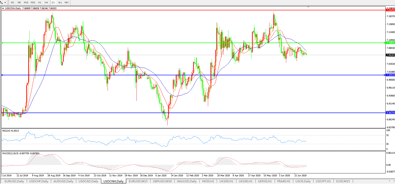 美元兑人民币USDCNH    日线图: