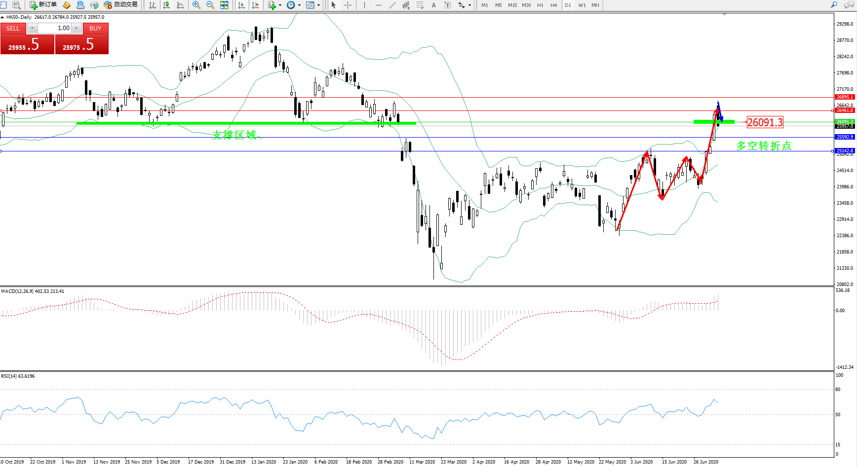 香港恒生指数7月7日(周二)收盘下跌363.50点,跌幅1.38%,报25975.66点;港股三大指数均呈高开低走行情,且尾盘跌幅持续扩大。跌穿26000点关口;半导体、中资券商板块回吐昨日涨幅。南下资金逆势流入61.21亿港元,大市成交额为2399亿港元。近日大涨的中资券商及半导体板块领衔大跌,中芯国际早盘创下新高后跳水,大幅收跌近9%,周期上游先做预期修复,业绩/估值共振的机会在明年;随着沪深两市大涨,接下来可能将轮到在港上市的内地企业股票上涨,若A股走势继续保持强劲,对H股而言无疑是个好兆头。疫情使得新生活方式的蓬勃发展,更加强化了互联网龙头企业的核心竞争力和价值。因此,这些革故鼎新的深刻变化,决定了股市的格局是全面牛市而非结构性牛市。