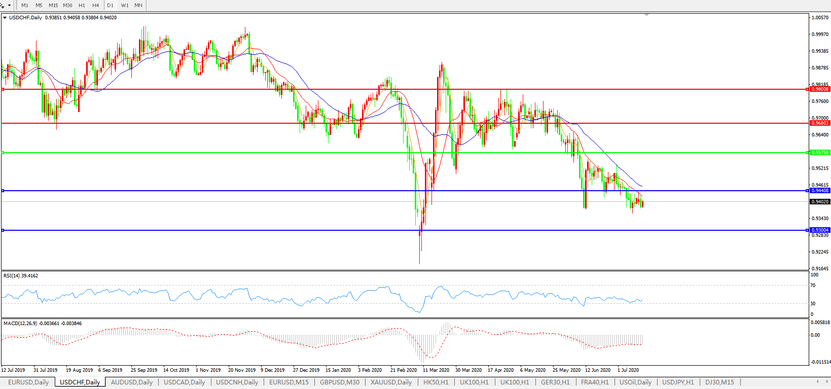 交易策略:0.9575下方看跌,目标0.9440、0.9300