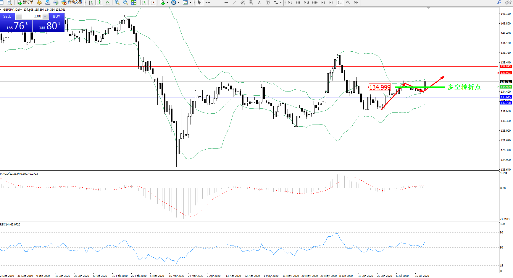 英镑兑日圆拉升至135.748附近整理,英国央行的书面证词中表示:英国经济已经在4月中旬触底,“V”字型描述的是过去,而不是预测。经济活动已经复苏了3个月,大约一半的经济产出已经被收复。当前预计经济产出将下滑20%,5月份的预期为下滑25%。据7月20日公布的一项调查结果显示,在英国大型企业中,有近半数认为,要到2021下半年,业务才能走出新冠疫情步入复苏;这项调查是在6月26日至7月8日之间进行,调查对象为109名大企业财务长;在大型、且大多为上市公司的财务长中,有49%预期,业务要等到2021年下半年,才会回到疫情发生前的水准;另外,有33%预期业务将于2021年上半年复苏;有10%声称,业务已经反弹。