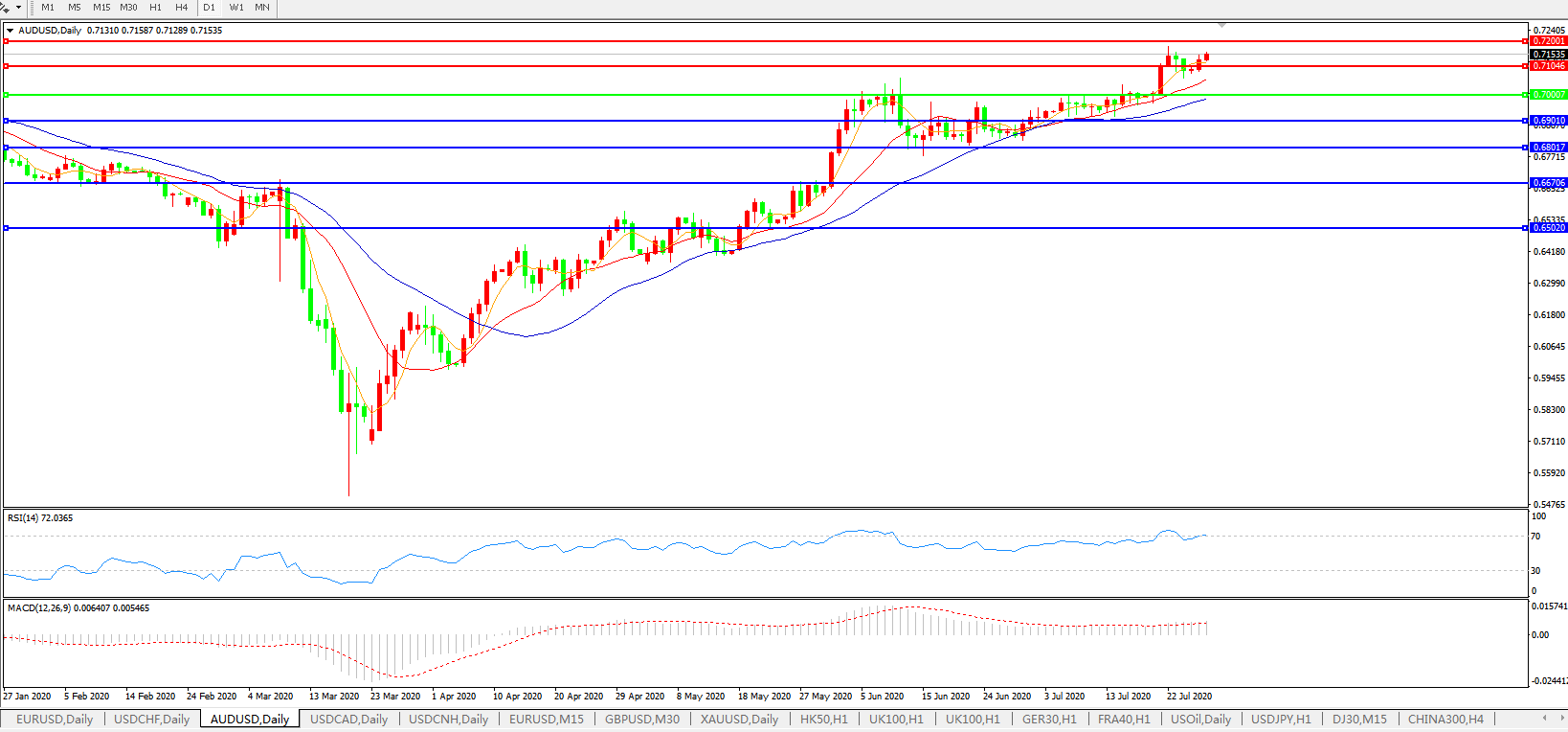 压制位:0.7100 0.7200