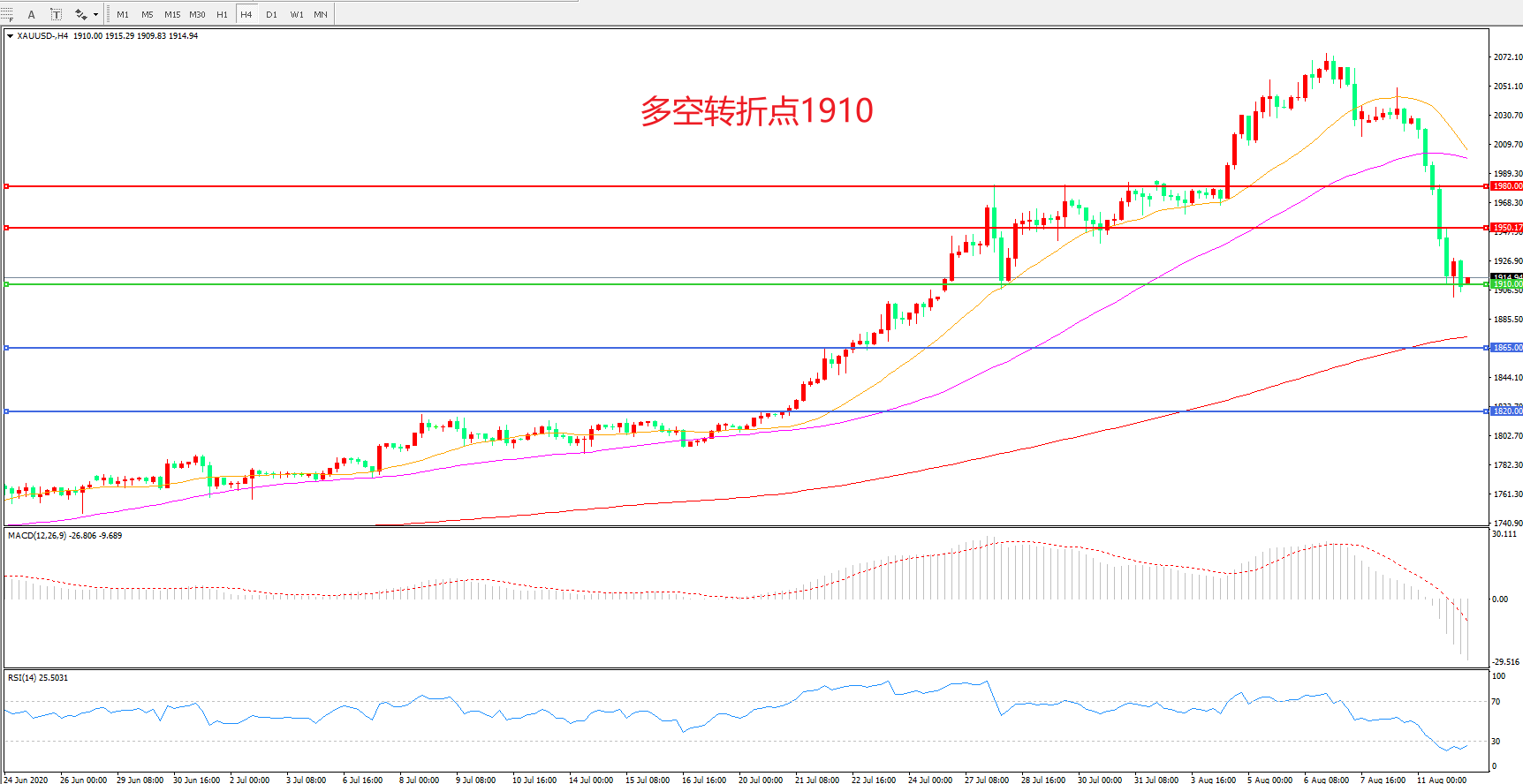 交易策略: 在1910.00之下看跌,目标1865.00 1820.00