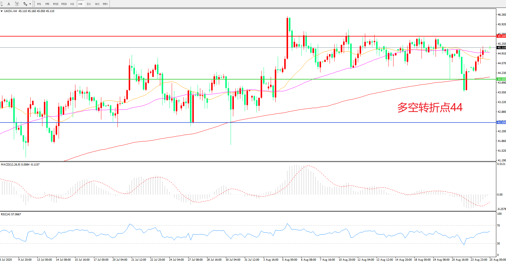 交易策略: 在44.00之上看涨,目标45.50 48.00