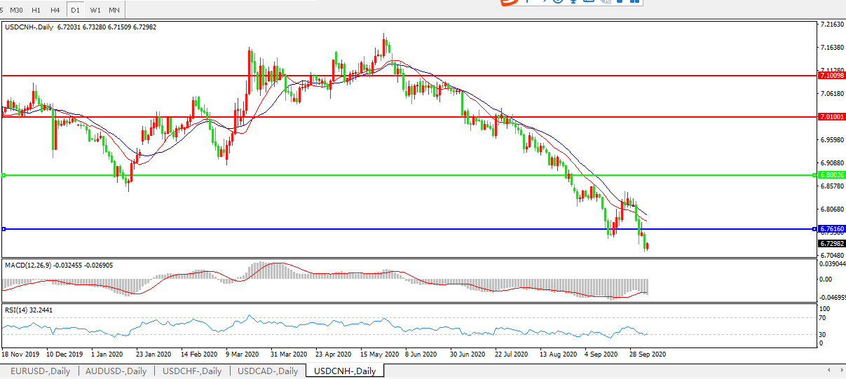 美元指数跌0.38%至93.46,跌至9月21日以来最低,因为风险情绪改善和民主党大获全胜的预测推高股市和美国国债收益率。CIBC北美外汇策略负责人Bipan Rai在研报中说,美国总统特朗普的健康状况也是一个因素,因Covid-19检测结果阳性而在周五住院的特朗普说,将在周一傍晚出院;预计市场将保持波动,尤其是在美国大选之前。高级市场分析师Joe Manimbo表示,我认为市场确信,在持续显示美国经济放缓的数据出炉后,财政刺激迟早会出台。白宫幕僚长梅多斯(Mark Meadows)周一表示,在新冠病毒大流行期间,仍有可能与美国国会就更多的经济救助达成协议,特朗普总统致力于达成协议,该消息令乐观情绪升温。不过,如果不能达成协议,可能会对美元有利。富国银行宏观策略师Erik Nelson称,我们认为大选前出台刺激政策的可能性仍很低。