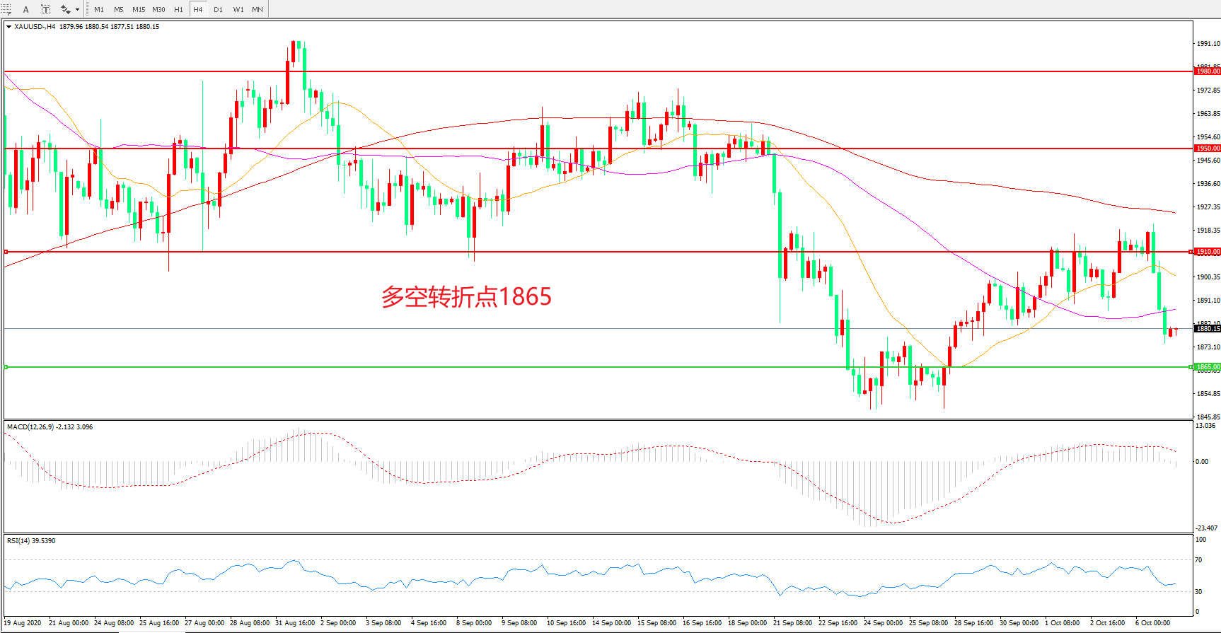 周二(10月6日),市场平地起风雷!特朗普在推特上表示,他拒绝了民主党的财政刺激方案,并命令他的代表停止谈判,直到总统大选结束。美元指数快速拉升,现货黄金自高位暴跌近50美元,收报1879美元/盎司。此前市场普遍预期财政刺激计划之后,黄金将从避险资产转变为对冲通胀的资产,但特朗普的“疯狂”改变了这一切。