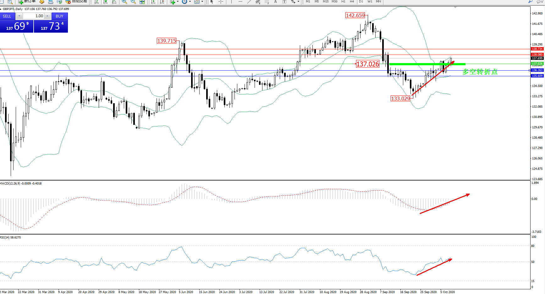 英镑兑日圆强势拉升至137.699附近,英国金融监管局联合英国央行,致信英国及国际银行的高管,阐述英国脱欧过渡期结束做准备的重要性,英国首相约翰逊发言人:本周的讨论是有益的,本周在一些领域取得了进展,但在一些重要问题上仍存在分歧,目前没有计划在周五发布谈判代表的正式声明,英国仍致力于达成协议,将在下周朝着这个目标努力,英国财政部:英国财政大臣苏纳克将于周五宣布下一阶段的就业支持计划,英国财政大臣苏纳克的新计划将为那些可能在未来几周和几个月内不得不关闭的企业提供安全网。宣布将在新冠疫情严重地区采取新的就业支持措施而获得提振。