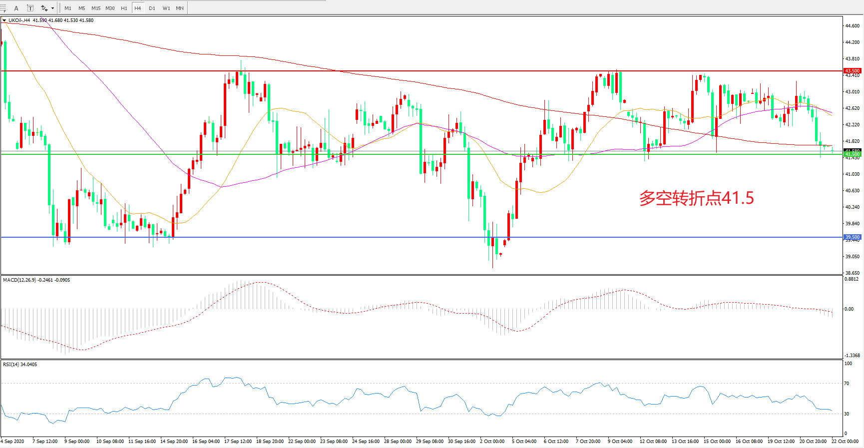 交易策略:  在41.50之上看涨,目标43.50      46.50