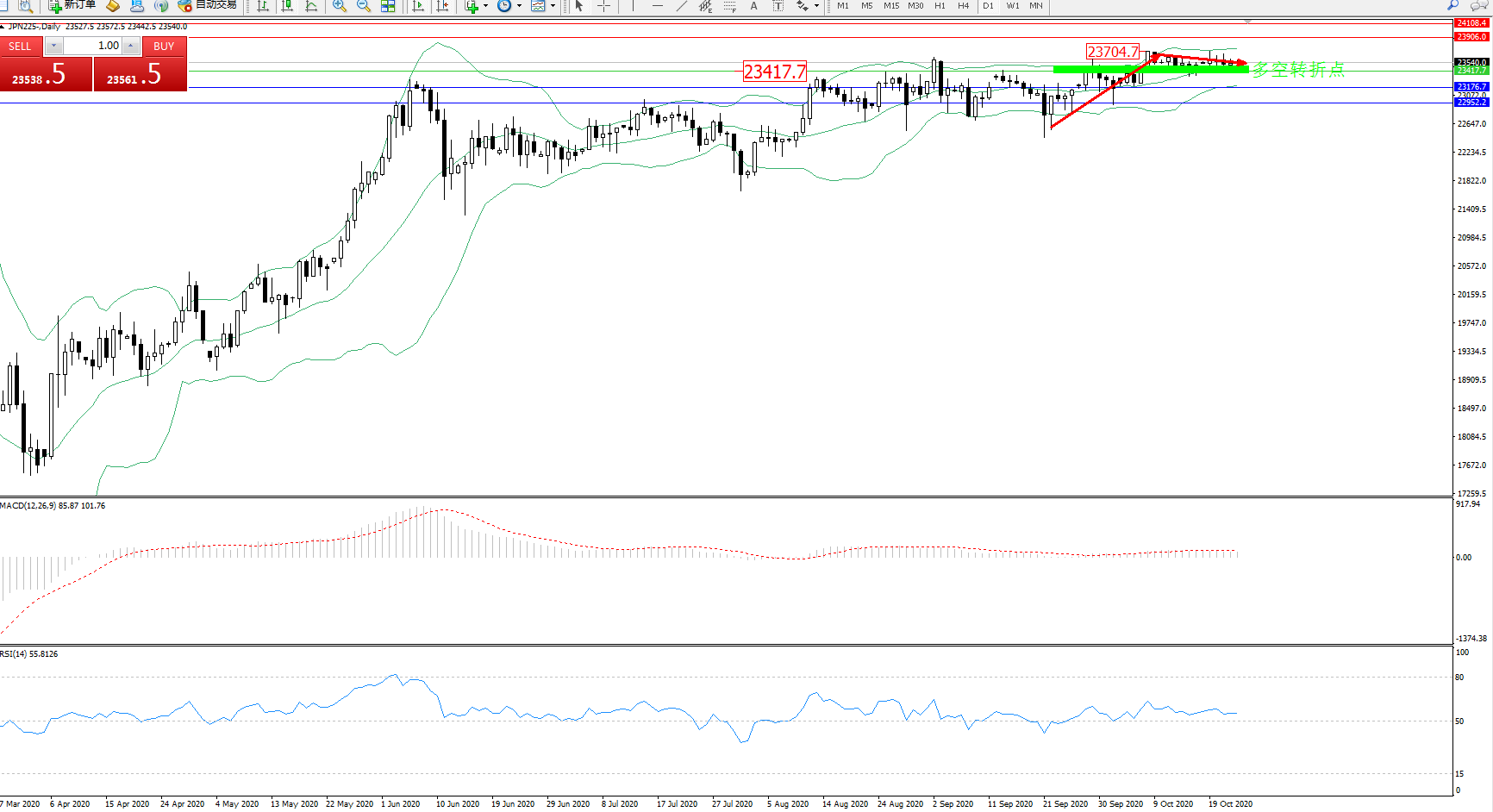 日经225指数10月23日(周五)收盘上涨59.73点,涨幅0.25%,报23534.00点。英国周五将与日本在东京签署贸易协议,这是英国脱欧以来与主要经济体之间的首份贸易协议。与此同时,英国年底前与欧盟达成贸易协议的努力进入最后冲刺。英国国际贸易大臣Liz Truss和日本外务大臣茂木敏充将参加签约仪式。两国在启动正式谈判后的三个月,即9月份就贸易协议达成原则性共识。根据日本外务省,该协议很大程度上保留了英国作为欧盟的一部分与日本进行贸易的条款。英国政府表示,这份协议预计在未来15年将使英国的GDP相比2018年提高0.07% 。