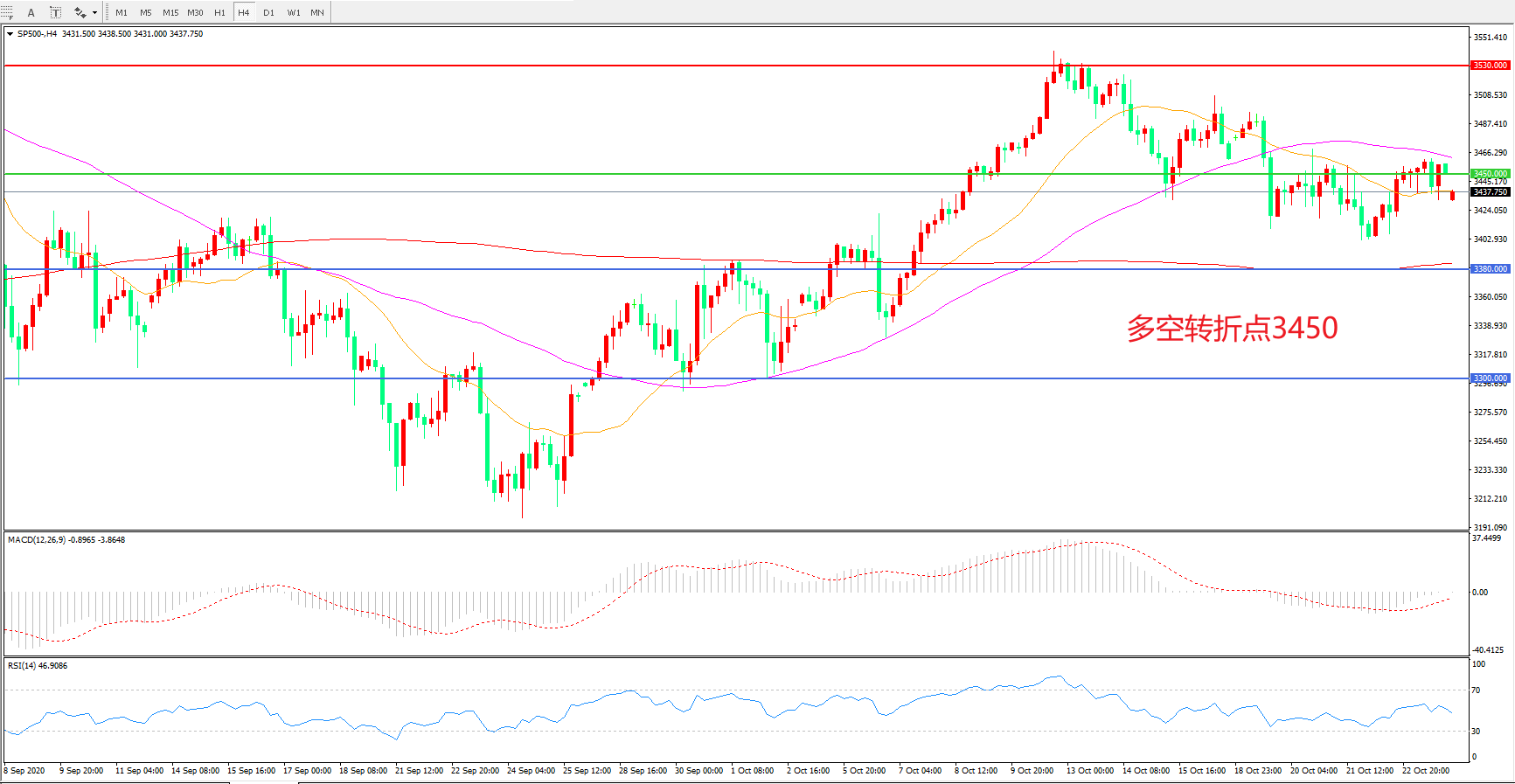 交易策略:在3450.00之下看跌,目标3380.00         3300.00