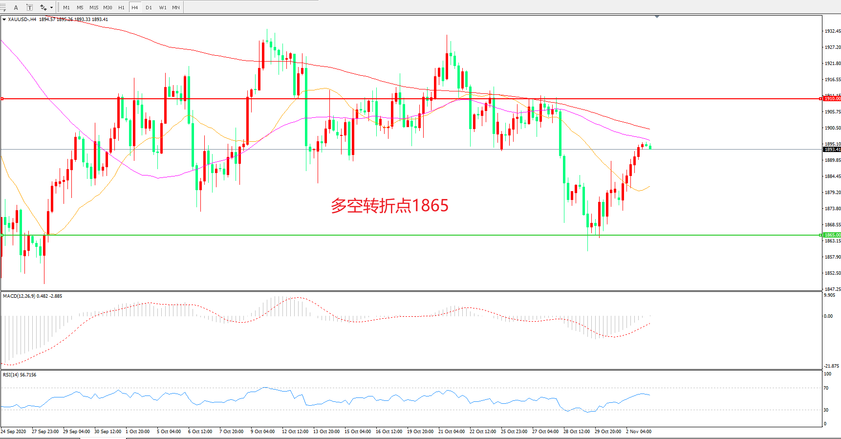 多空转折点:1865.00