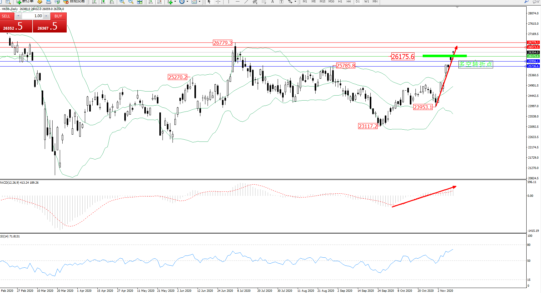 香港恒生指数11月10日(周二)收盘上涨285.31点,涨幅1.10%,报26301.48点;港股主要指数收盘涨跌不一,午后随A股下挫,尾盘稍有回升,恒生科技指数大幅收跌5.15%,为有纪录以来最大单日跌幅。香港本地股、啤酒股尾盘涨幅再度扩大,渣打集团大涨超10%;濠赌全线爆发,受益疫苗进展和澳门放宽从内地入境外国人限制;市场监管总局11月10日就《关于平台经济领域的反垄断指南(征求意见稿)》公开征求意见,此前强势的互联网巨头股全部下挫,美团大跌超10%,京东跌近9%,阿里跌5%,腾讯跌超4%。今日南下资金净流入9.14亿港元,大市成交额放大至2338亿港元。市场仍在继续交易拜登胜选和疫苗好消息,不过,美国联邦总务署(GSA)仍然没有宣布拜登为总统选举的获胜者,而辉瑞的疫苗初步研究结果也引发对安全性和持久性的质疑。但眼下市场关注焦点却重返对于美国大选选情的顾虑,这令美元指数继续承压,也与美国朝野恶斗之下财政援助协议年内达成料无望的前景构成了鲜明反差。
