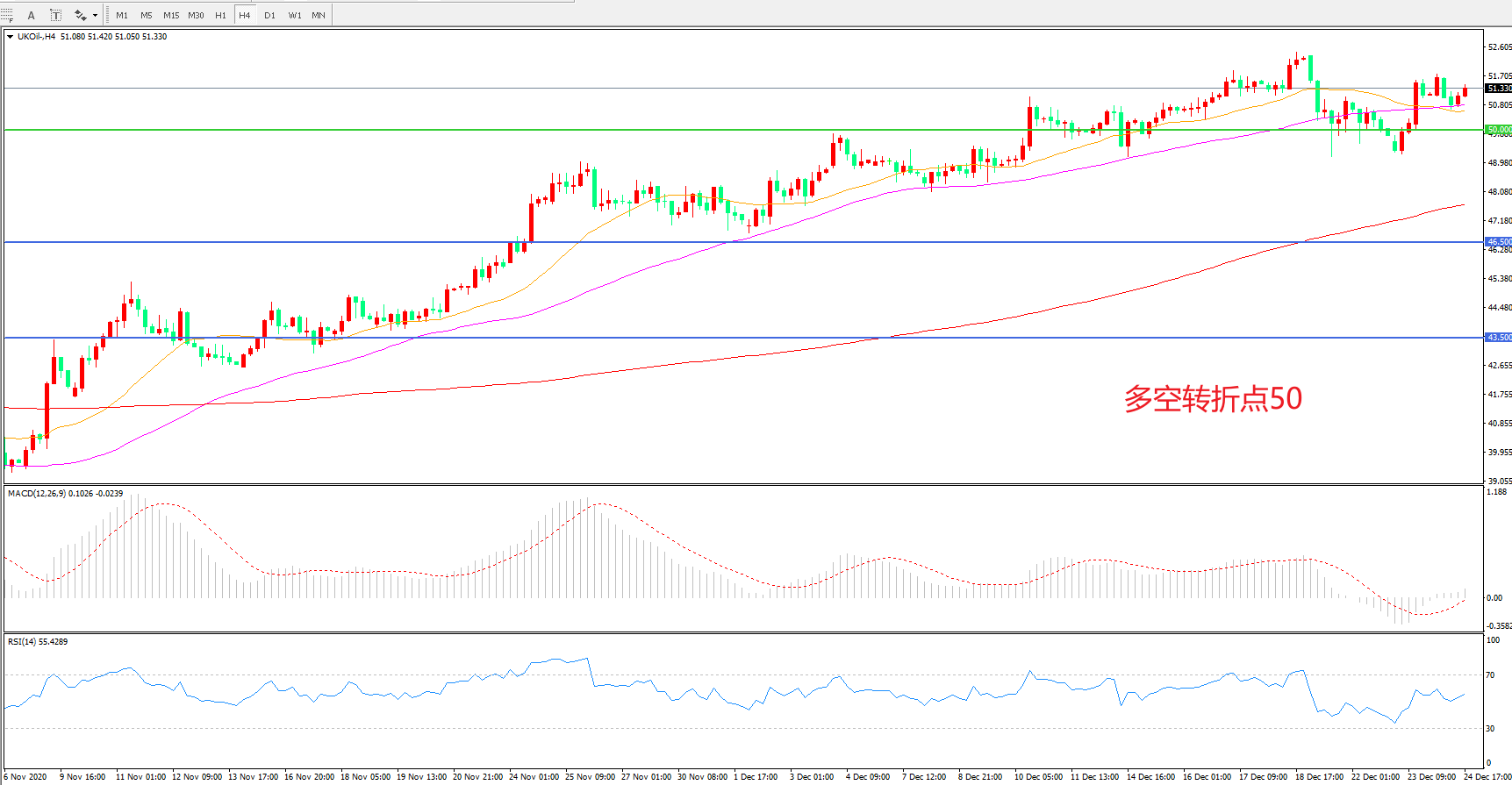 目前来看,原油市场中主要的利多作用有疫苗的预期以及美国纾困方案。目前,这两个因素都已经充分反映。因此,对于原油价格来说,似乎基本面和宏观面并不能指出明确的方向,至于价格是否会在技术面的层面走自然下落,则要等到圣诞假期之后,市场成交活跃在观察市场情绪的发酵。
