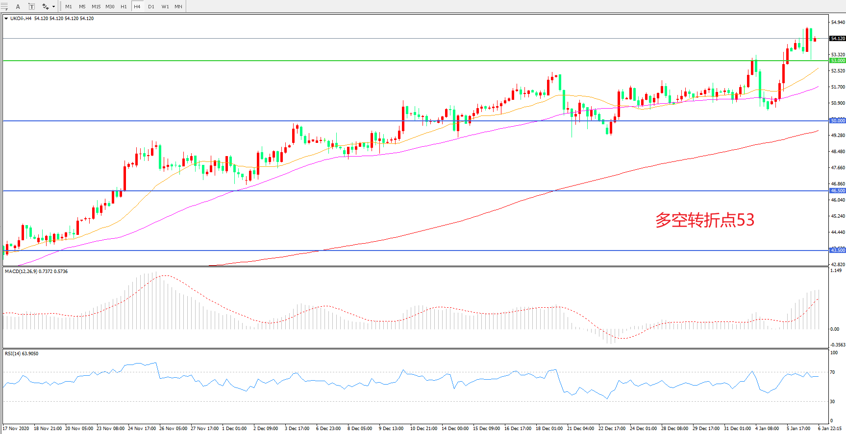 交易策略: 在53.00之上看涨,目标57.00 60.00