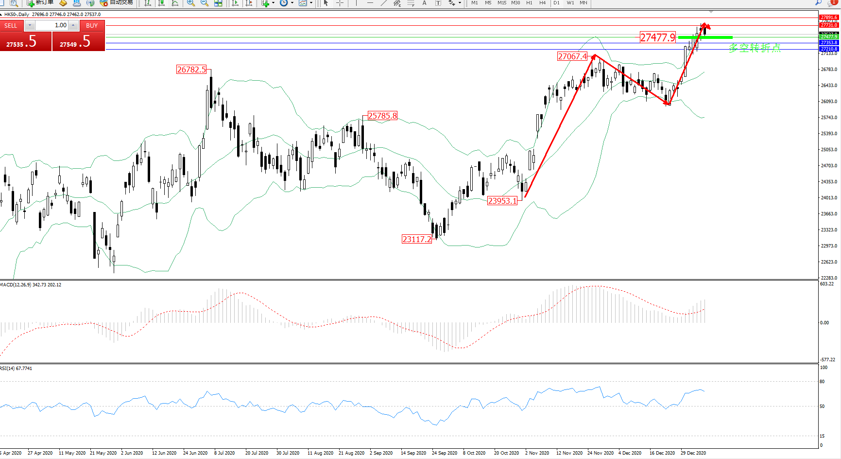 香港恒生指数1月7日(周四)收盘下跌143.78点,跌幅0.52%,报27548.52点;港股主要指数全线收跌,恒指终结6连涨,恒生科技指数跌2.42%报8400点。大型科技股重挫,腾讯跌4.7%,阿里跌近4%,两者拖累恒指下跌逾160点;纽交所考虑继续执行最初的退市计划,电信股大跌,中联通尾盘跌幅扩大至超11%;香港地产股、手机概念股普跌,高铁基建股全线回调;光伏新能源股尾盘大幅拉升,汽车股、银行股、纸业股全天保持强势。今日南下资金逆势大幅净流入152.55亿港元,大市成交额为2278.23亿港元。美方考虑将阿里腾讯列入“黑名单”,外交部回应:美方的行为是在所谓的自由市场经济和公平竞争问题上赤裸裸的双重标准,非常虚伪。中方将采取必要措施,坚决维护中国企业的正当合法权益,坚决支持中国企业依法维护自身的权益。香港交易所:2020年的香港首次公开招股集资金额为3975亿港元,较2019年的3142亿港元上升27%。总集资金额为7,437亿港元,较2019年的4,542亿港元上升64%。