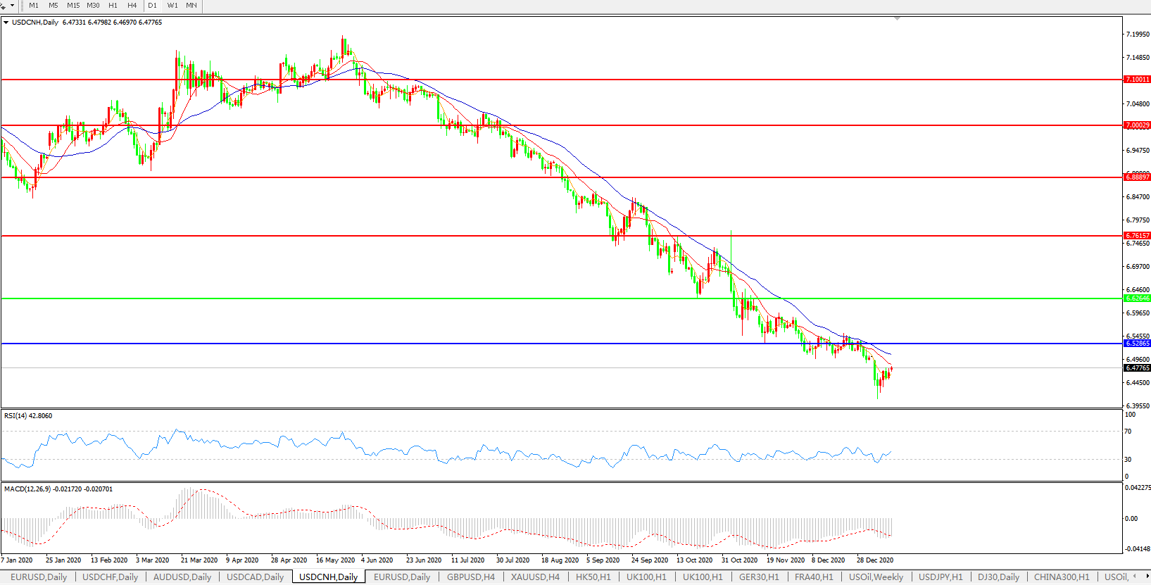 美元兑人民币USDCNH    日线图: