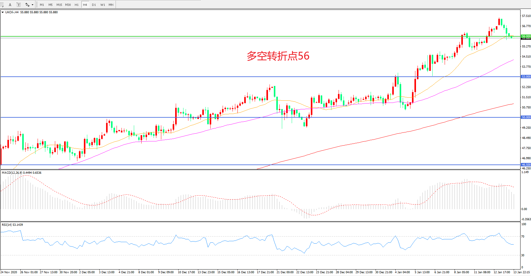 交易策略: 在56.00之上看涨,目标60.00 64.00